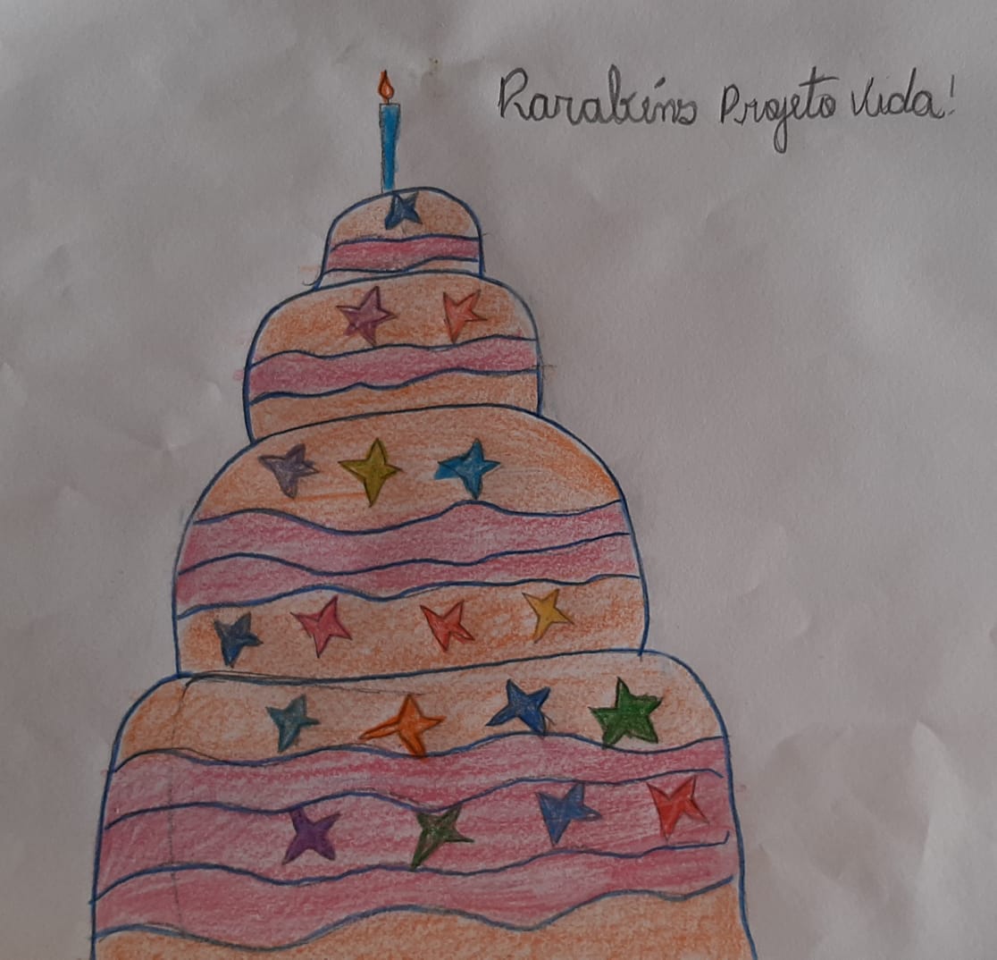 A atividade sociopedagógica comemorativa ocorreu no encontro virtual. A colaboradora Vânia Rodrigues promoveu um momento de “contação de histórias” sobre o Projeto Vida. Os participantes foram convidados a relatar em forma de desenhos o que mais gostam na Instituição e o que esperam para 2023. Sobre o que mais gostam, foram citadas as brincadeiras com os colegas, os colaboradores, os encontros virtuais e as doações. E o que não poderia faltar no próximo ano? Segundo os atendidos, não podem faltar: a oficina de leitura, as brincadeiras, o lanche e as pessoas, sejam colaboradores ou beneficiados.