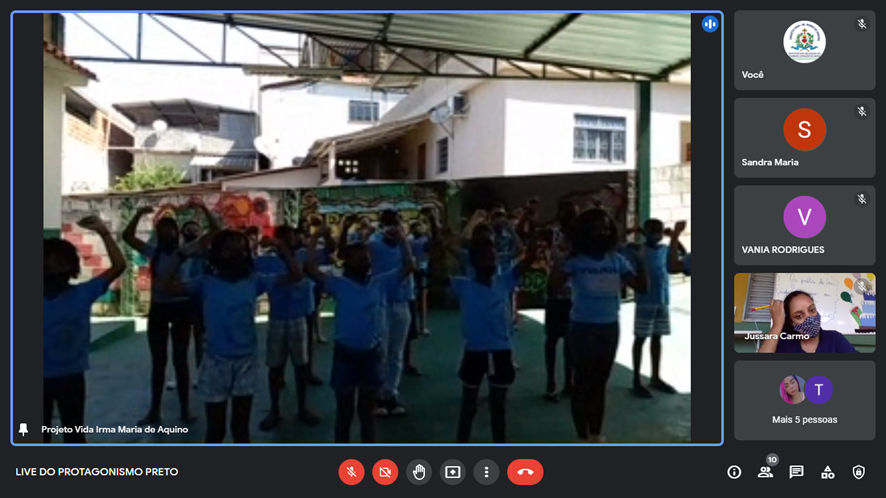 Contribuiu também com a discussão a participação na live apresentada pelo Projeto Vida Irmã Maria de Aquino que promoveu várias apresentações culturais, como música, dança e poemas. Foi um momento de aprendizagem sobre a riqueza e contribuições da cultura negra para a constituição do que hoje somos, como nação, seja do ponto de vista histórico, cultural e religioso. Para os beneficiados da nossa Unidade o momento trouxe também um saudosismo das atividades presenciais e despertou ainda mais motivação para a realização dos trabalhos.