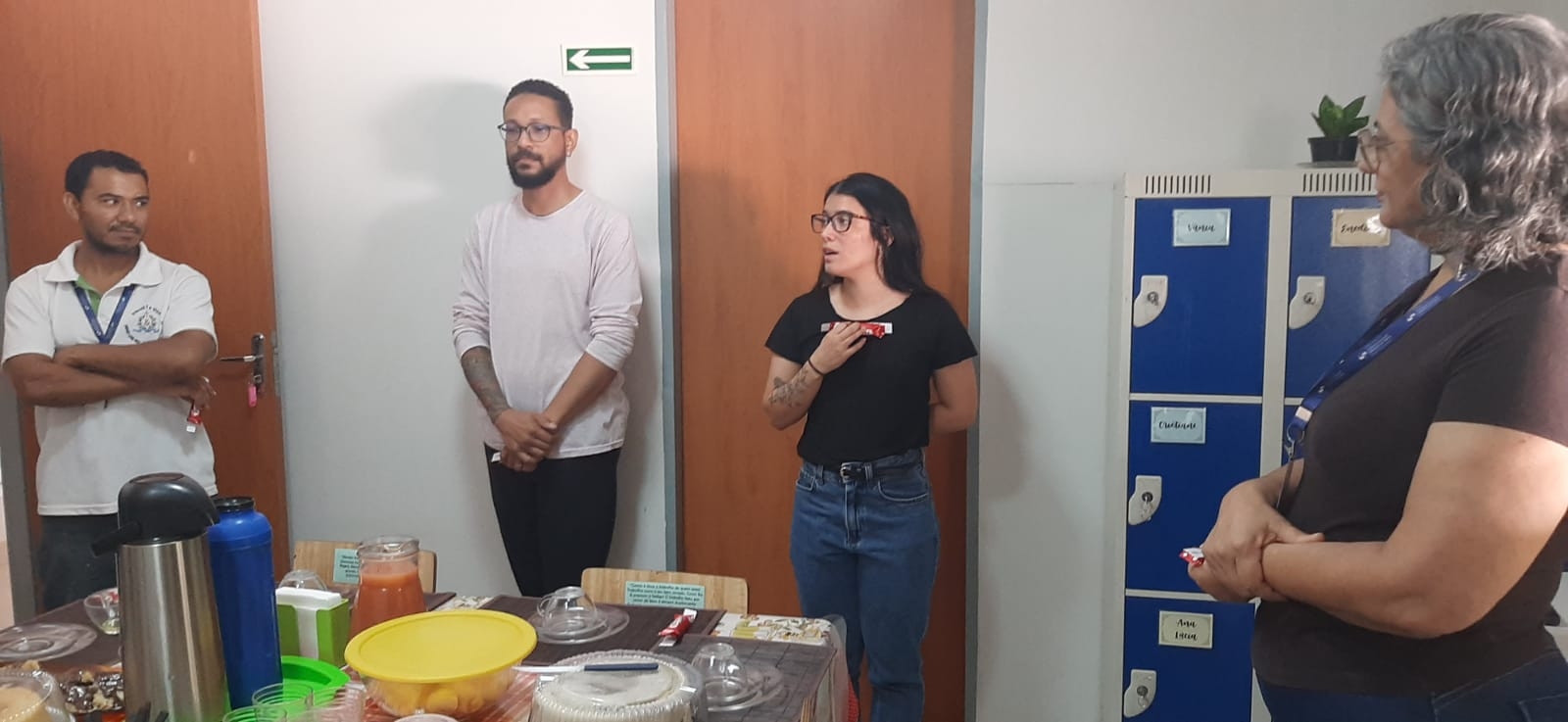 O momento começou com uma reflexão da pedagoga, Vânia Rodrigues, sobre o papel do educador social. Em seguida, houve uma dinâmica de sorteio: cada colaborador/a recebeu um chocolate Prestígio, com o nome de uma colega e uma frase a ser completada: “É um prestígio ter você na nossa equipe porque…”. E, assim, se fez. Todos(as) se expressaram e fizeram da dinâmica uma excelente oportunidade para ampliar o conhecimento de si e do (a) outro(a).