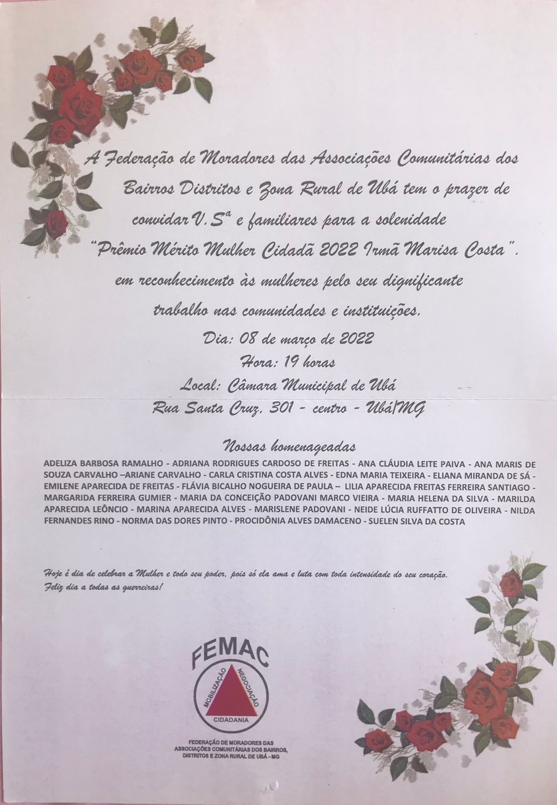 Este ano, o DIA INTERNACIONAL DA MULHER foi lindamente celebrado, aqui em Ubá, em torno de uma figura feminina muito admirada pelos Ubaenses, em todos os cantos da cidade!