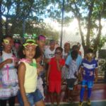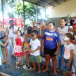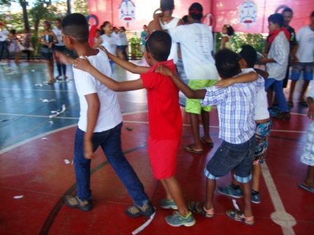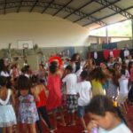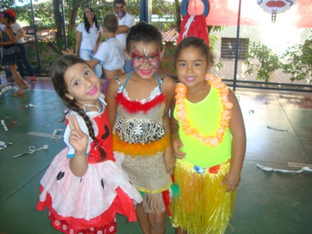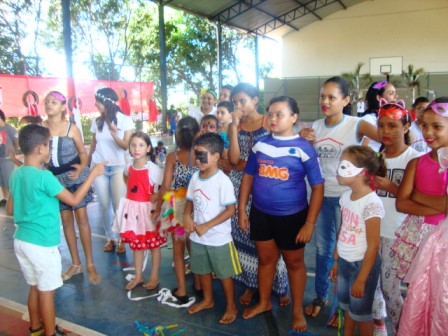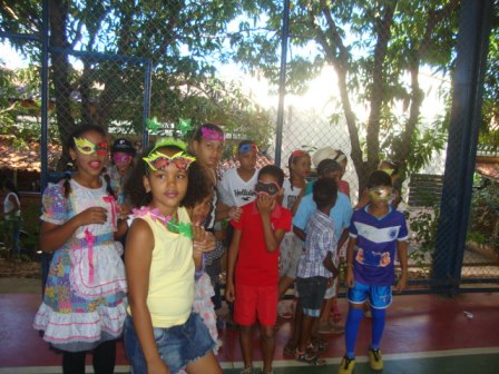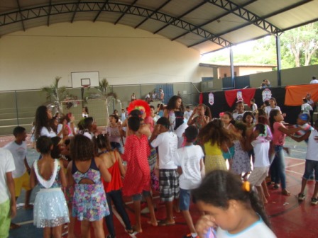 Ao som de samba, tivemos desfile das melhores fantasias, danças; tivemos também uma pequena batucada feita pelas crianças, para a qual foram convidadas a trazerem tampas de panelas, latinhas etc. Foram também usadas as máscaras feitas nas oficinas.