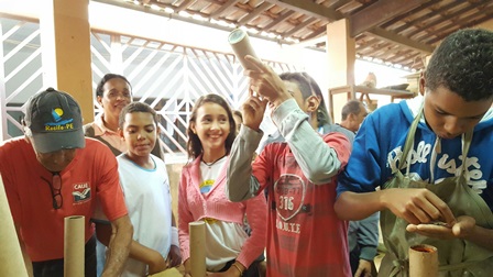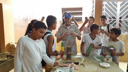 No dia 11/06 (pela manhã) e dia 14/06 (à tarde), alguns educandos do Centro Social Achilles Diniz Couto tiveram uma oficina de confecção do Caleidoscópio. Foi uma oficina para um grupo pequeno e esse grupo depois vai repassar para os demais adolescentes. Foi coordenada pelo Senhor Roberto Bertoldo de Araújo, pai da Coordenadora Gabriella Lauar. Foi uma oficina muito interessante, pois puderam sair um pouco da rotina e aprenderam uma novidade, todos ficaram super curiosos com o caleidoscópio e puderam levar de presente o que eles confeccionaram. Um caleidoscópio é um aparelho óptico, formado por um pequeno tubo de cartão ou de metal, com pequenos fragmentos de vidro colorido, que, através do reflexo da luz exterior, em pequenos espelhos inclinados, apresentam, a cada movimento, combinações variadas e agradáveis de efeito visual.
