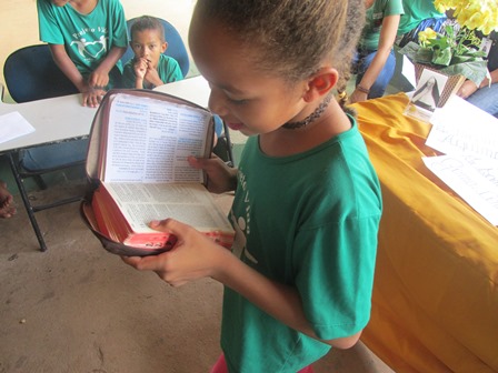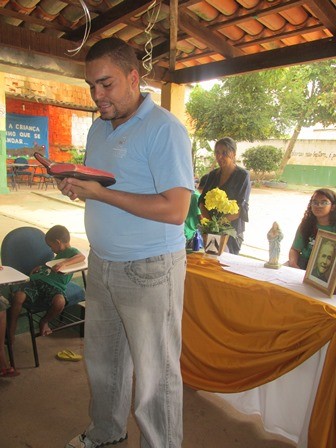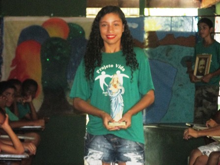 Sob a reflexão de uma história de “luta e missão em defesa da vida”, as crianças montaram um belo altar e declamaram um poema (autor desconhecido) chamando a atenção para as vocações.