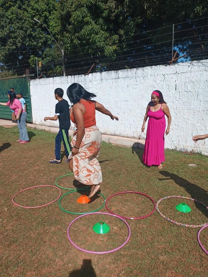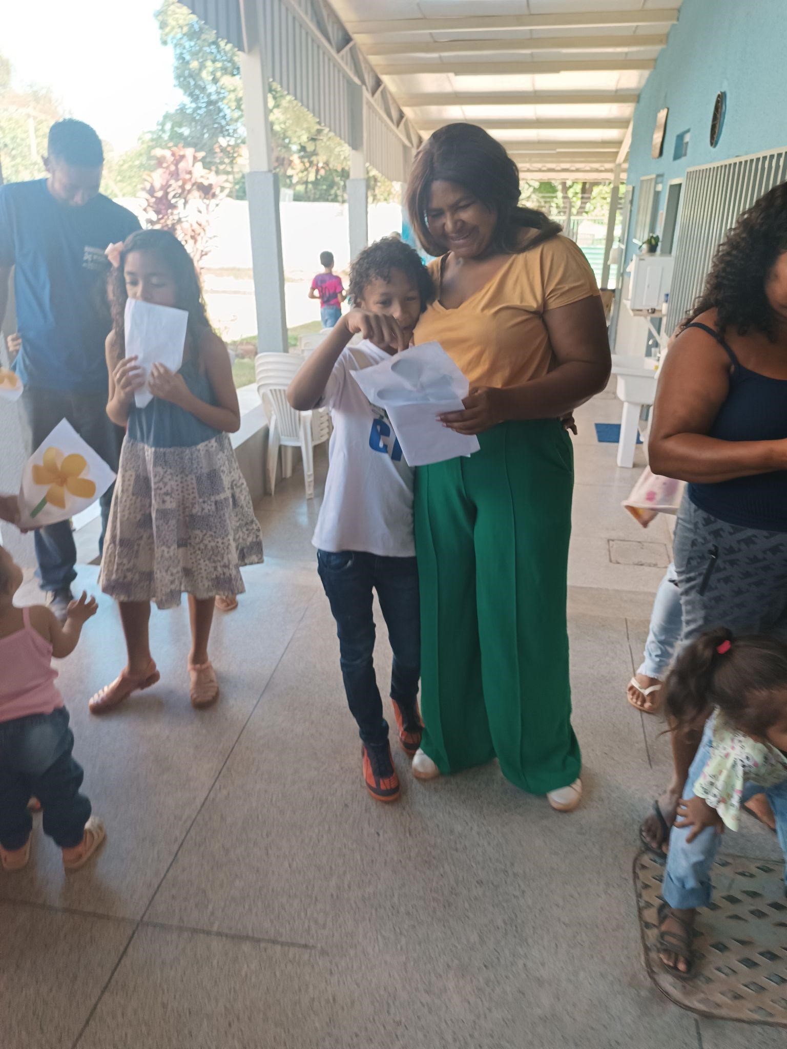 Após os circuitos, houve uma apresentação musical das crianças, em homenagem às mães, e a entrega de uma flor feita em papel. Na oportunidade, a coordenadora Sebastiana Ramos fez a leitura do material, enviado pelo Waldemar Bettio, sobre o Dia das Mães e as famílias foram convidadas a abençoar umas as outras.