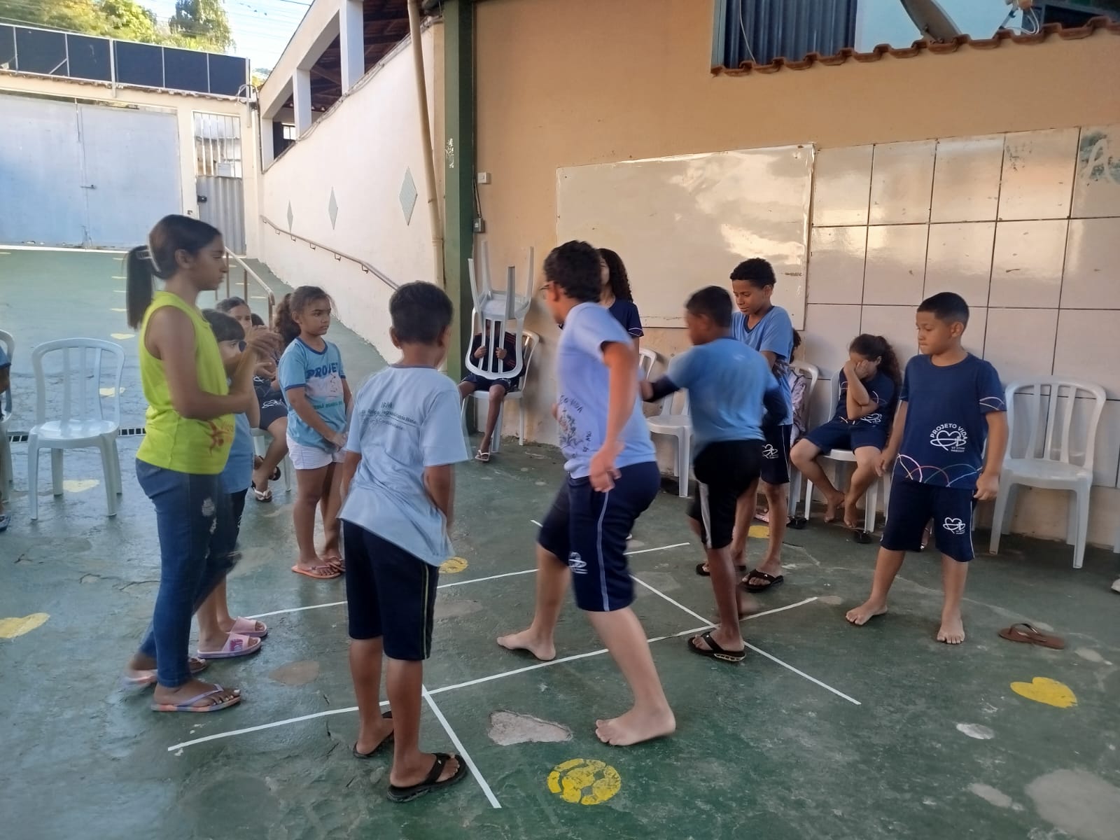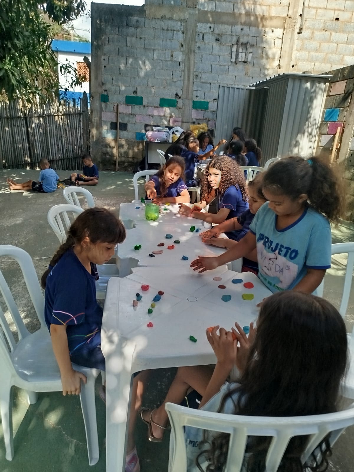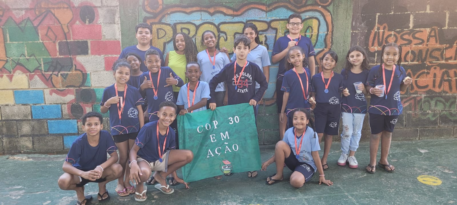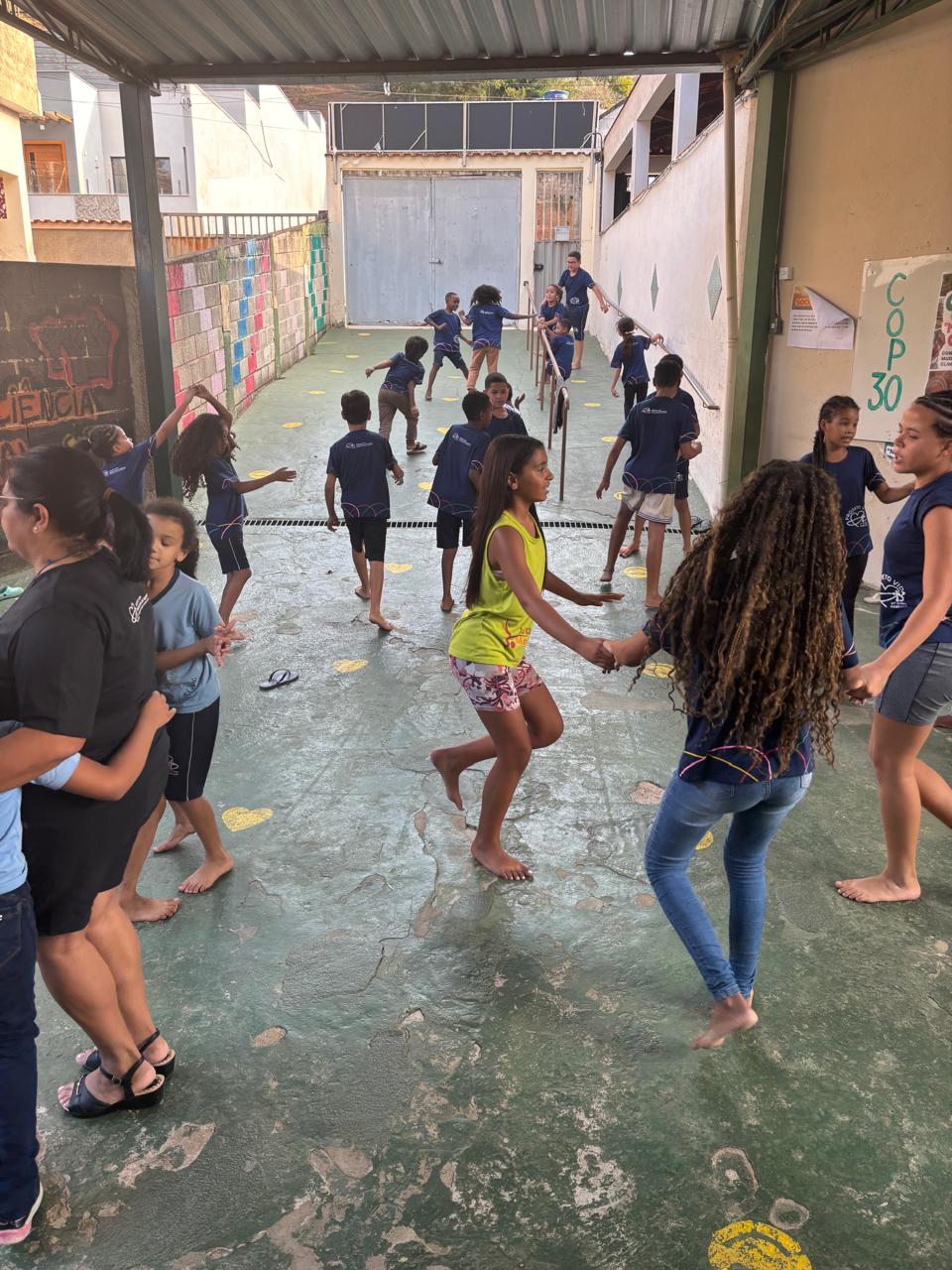 Desenvolveu-se junto aos atendidos, diversas atividades de brincadeiras, desenhos, coloridos, jogos, danças, destacando-se a gincana, onde separados em duas equipes criaram os nomes “COP 30 em Ação” e “Todos pelo Meio Ambiente”.