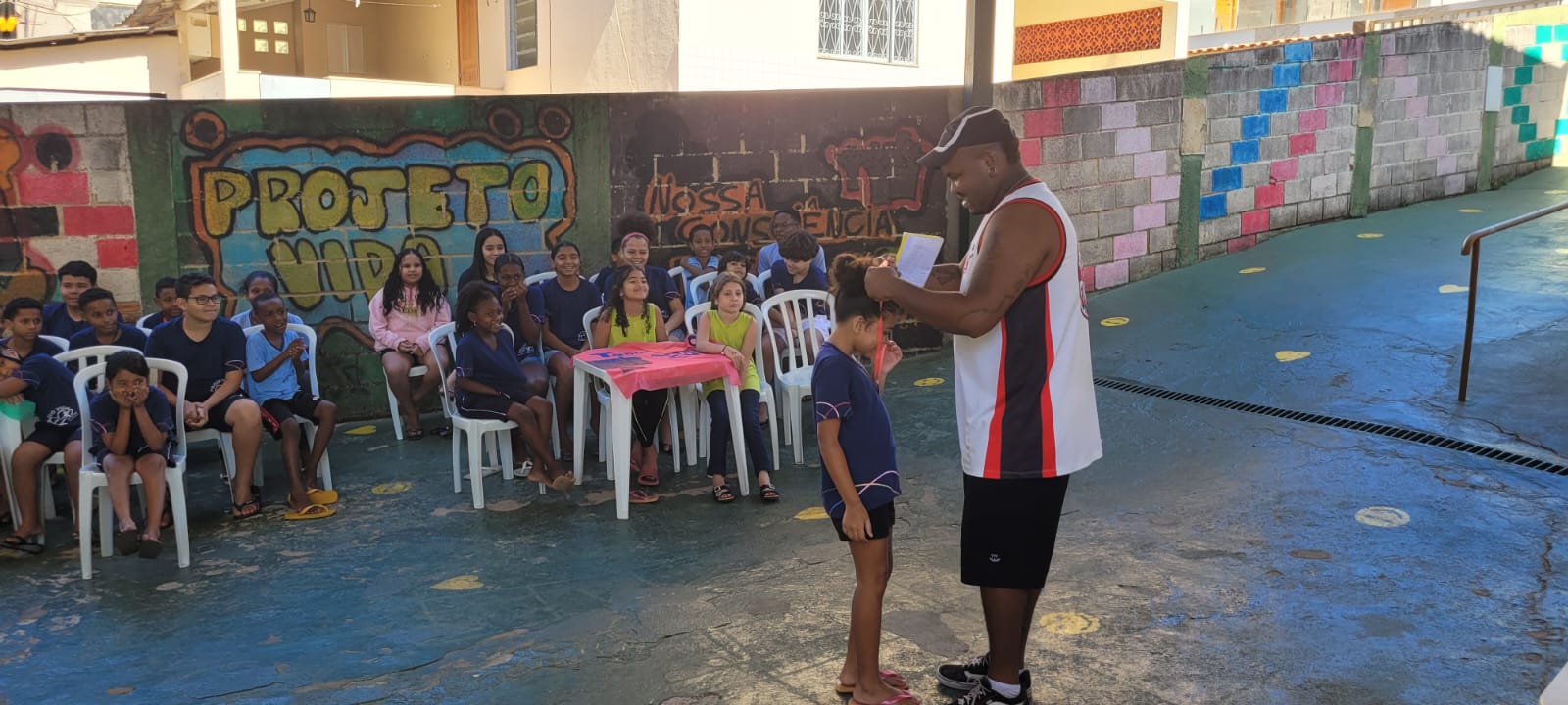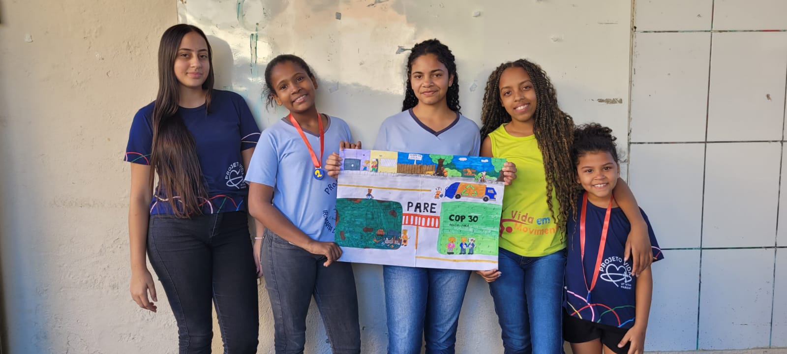 No decorrer da gincana, inspirados na “onda” do Bobbie Goods, livros de colorir com desenhos simples e adoráveis de cenas do cotidiano para coloração e criatividade, as crianças e adolescentes do PVIMA, elaboraram dois magníficos cartazes com representações com o tema da COP 30, propondo uma disputa a ser posteriormente avaliada pelas colaboradoras, no entanto foi impossível eleger um vencedor, diante de tanta beleza e criatividade, deu-se um justo empate, onde ambas equipes pontuaram.