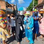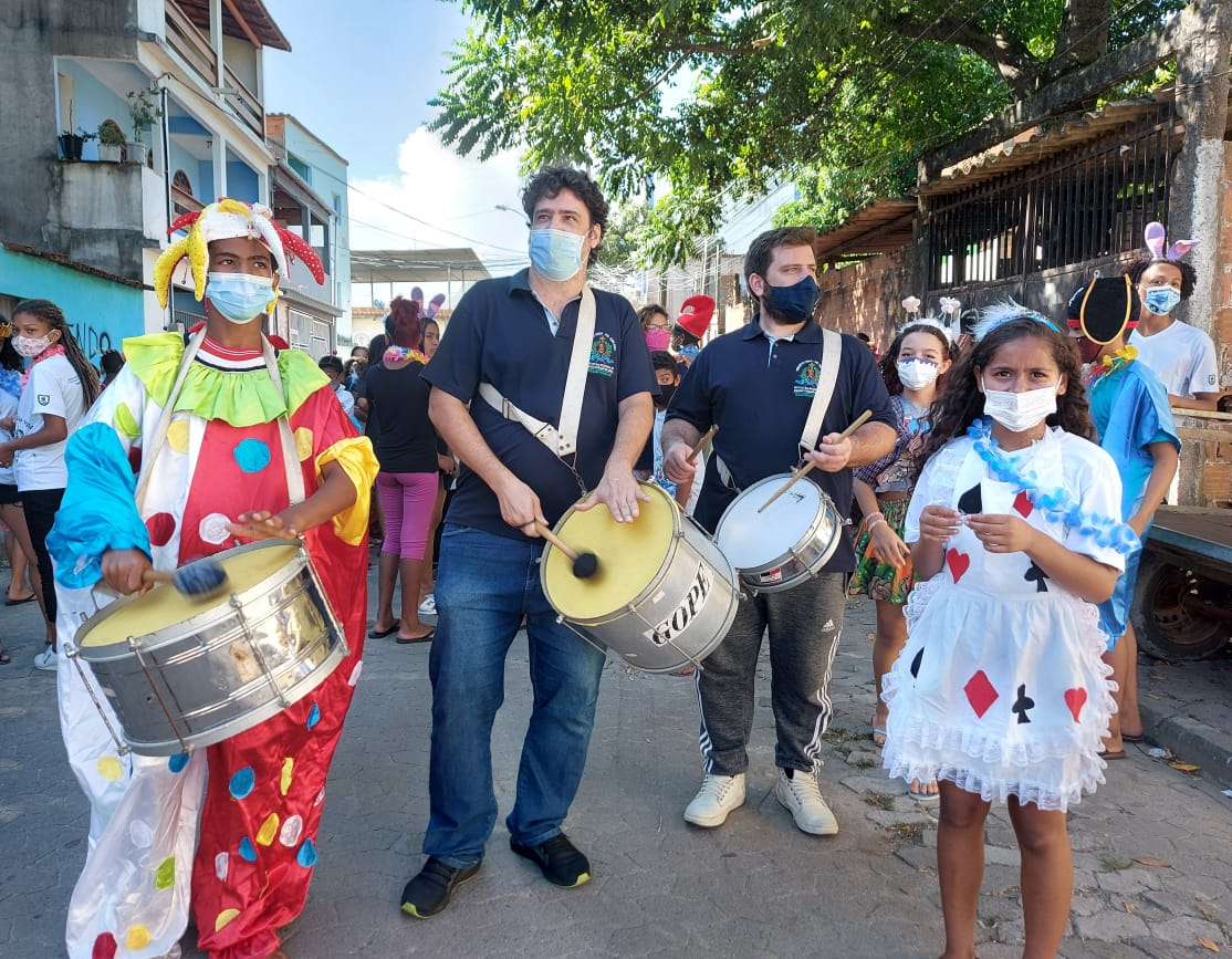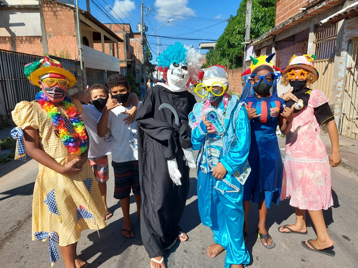 Na véspera do carnaval, crianças e adolescentes desfilam pelas ruas de Jardim Carapina, esbanjando cor e alegria, chamando a atenção da comunidade para dois assuntos importantes: o uso da máscara facial e de não perder a esperança, ou melhor dizendo, de “ESPERANÇAR-SE”.