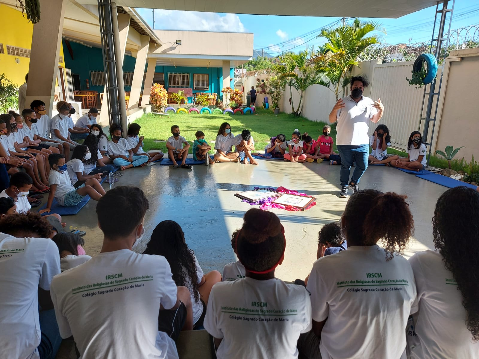 As crianças e os adolescentes do Projeto Vida se reuniram para celebrar o aniversário de fundação do Instituto das Religiosas do Sagrado Coração de Maria. O momento, preparado pela Equipe Técnica, fez memória da vida do fundador, Padre Jean Gailhac, e das co-fundadoras, e relembrou também o processo de fundação, desafios e conquistas do IRSCM até hoje.