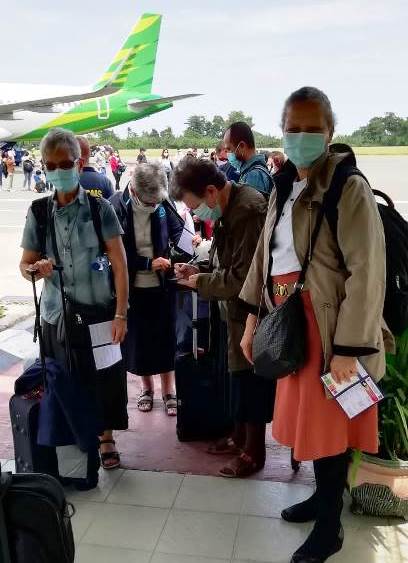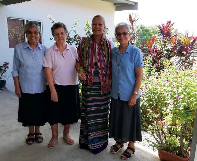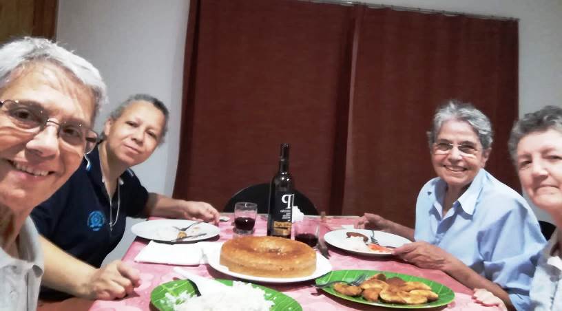 Chegamos com uma chuva bem forte, o que levou a eletricidade. Mas agradecemos a Deus e ao Sagrado Coração de Maria toda essa viagem de Lisboa a Zumalai sem contaminações, com saúde e disposição. Experimentamos a força da oração das Áreas de Portugal, Brasil e todo o nosso Instituto! Somos gratas a vocês. Celebramos esta chegada com um delicioso bolo que ficou congelado e estava muito bom.