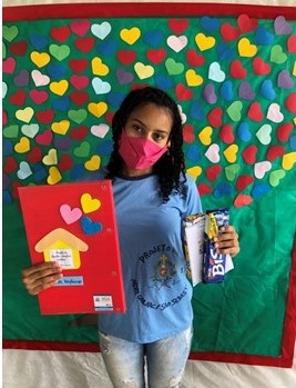 Os adolescentes, por sua vez, receberam um kit contendo uma agenda e uma caixa de chocolate Bis. Foram contempladas também as crianças das famílias, com os itens recebidos das doações. Os presentes foram entregues juntamente as doações de biscoitos e conservas de milho verde. Os alimentos foram doados pelo parceiro Programa Mesa Brasil – SESC/DF. Na ocasião, também foi realizada a entrega da atividade sociopedagógica denominada “Caderno de Atividades – Direitos e Deveres das Crianças e dos Adolescentes”.