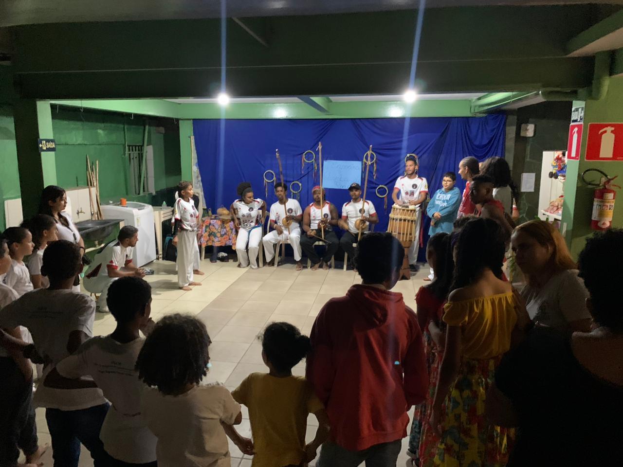 Em 1890 a Capoeira foi proibida no Brasil, pois era vista como uma prática violenta e subversiva. A polícia tinha orientações expressas para prender os capoeiristas que praticavam a luta. A liberação aconteceu apenas em 1930 e, em 07 de agosto de 1985, foi aprovada a Lei nº 4.649, que oficialmente declarou o dia 3 de agosto como o Dia do Capoeirista. Assim fizemos questão de celebrar esta data, o dia do Capoeirista na unidade foi lembrado com muito carinho pelo colaborador Lucas Vilela, que trouxe para a data uma reflexão acolhedora sobre ser capoeirista, e a responsabilidade deste em manter viva a Capoeira. Como gesto concreto, Lucas levou as crianças e adolescentes para realizar a oficina na praça do território. E, para fechar as celebrações deste dia em grande estilo, o educador da oficina de capoeira somou com a oficina de dança e prepararam um momento muito especial, realizado no dia 31/08: Uma Roda de Capoeira e Samba. O momento favoreceu a convivência, entre as crianças, adolescentes, representantes e o mestre Navalha, do grupo Mandinga de Minas.