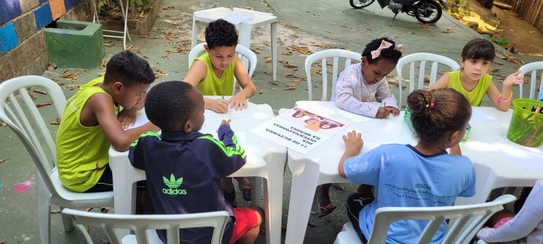 Por meio de leituras, abriu-se a discussão, promovendo o respeito e a expressão individual, incentivando o empoderamento e os seus direitos, enquanto meninas, para que os meninos façam parte desse conhecimento e possam valorizar a individualidade de cada menina, estimulando a empatia e o respeito. Com as crianças, foi proposto que expressassem o entendimento sobre o assunto, através de desenhos.