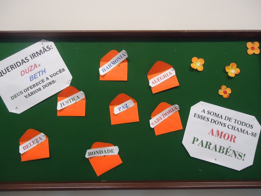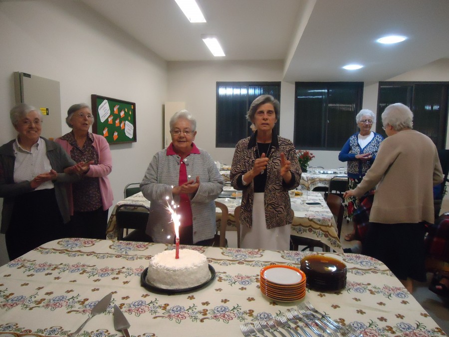 Nossas queridas irmãs – Beth Faustini e Duza Marques – fizeram aniversário nos dias 30 de julho e 1 de agosto, respectivamente. Foram homenageadas por nós, em Belo Horizonte, na Celebração Eucarística do dia 1 de agosto. Participaram conosco familiares da Duza e as Religiosas das nossas Comunidades Coração de Maria e Gailhac, além de pessoas leigas que costumam participar da Eucaristia conosco.