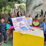 A atividade teve início com uma roda de conversa com as crianças e os adolescentes sobre o que sabiam sobre a Páscoa, qual o seu significado, como era celebrado em família. Diante das respostas foi possível realizar o diálogo baseado no verdadeiro sentido da Páscoa. Em seguida foi realizada uma dinâmica, em que um “coelho” achava que a Páscoa era dia dos coelhos, uma menina muito esperta explica para o coelho todo o sentido da Páscoa.