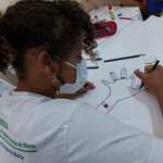 Na oficina de arte, o projeto “Diferentes Olhares Para os Sonhos”, a partir da referência do movimento surrealista, tem sido proposta uma reflexão sobre os sonhos e sobre a perspectiva de futuro.