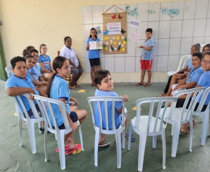 Neste mês de março, na Oficina de Encontro Laços de Afeto, a temática trabalhada foi “Respeito é bom e faz bem!”, baseada no livro de mesmo nome, de Ted e Jenny O’Neal. E, para contemplar a temática da oficina, foi exibido para as crianças e adolescentes o filme “Extraordinário”.