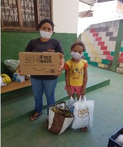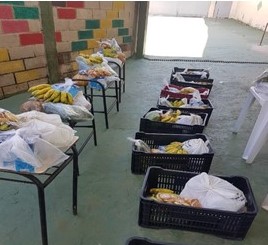 Diante do contexto imposto pela pandemia do Covid-19, após a suspensão das atividades, o Projeto Vida Irmã Maria de Aquino – Ubá, em parceria com o Banco de Alimentos da cidade, realizou a doação de uma cesta verde (legumes e frutas) semanalmente, para algumas famílias das crianças e dos adolescentes que frequentam a Unidade. Também, com a ajuda de outros parceiros e doadores, tem sido realizada a entrega de cestas básicas mensalmente, contemplando todas as famílias.