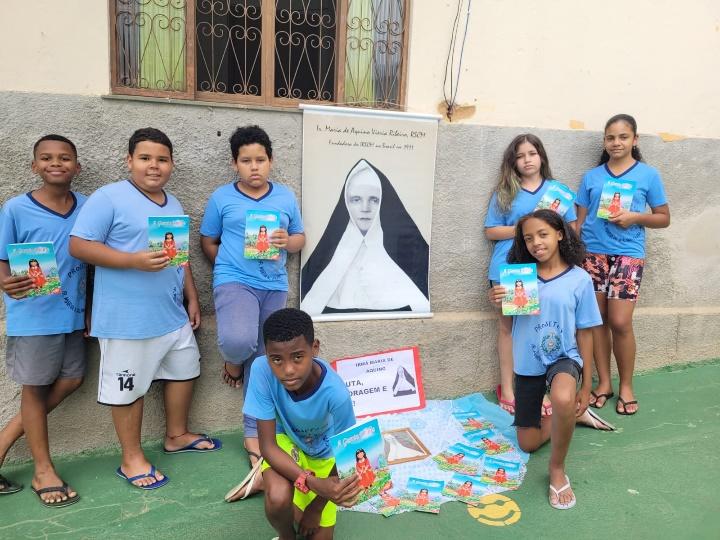 O momento foi iniciado com a leitura da revista em quadrinho “A Garota Emília”, para que os novatos, recém inseridos no Projeto Vida, tivessem a oportunidade de conhecer a história da Religiosa.