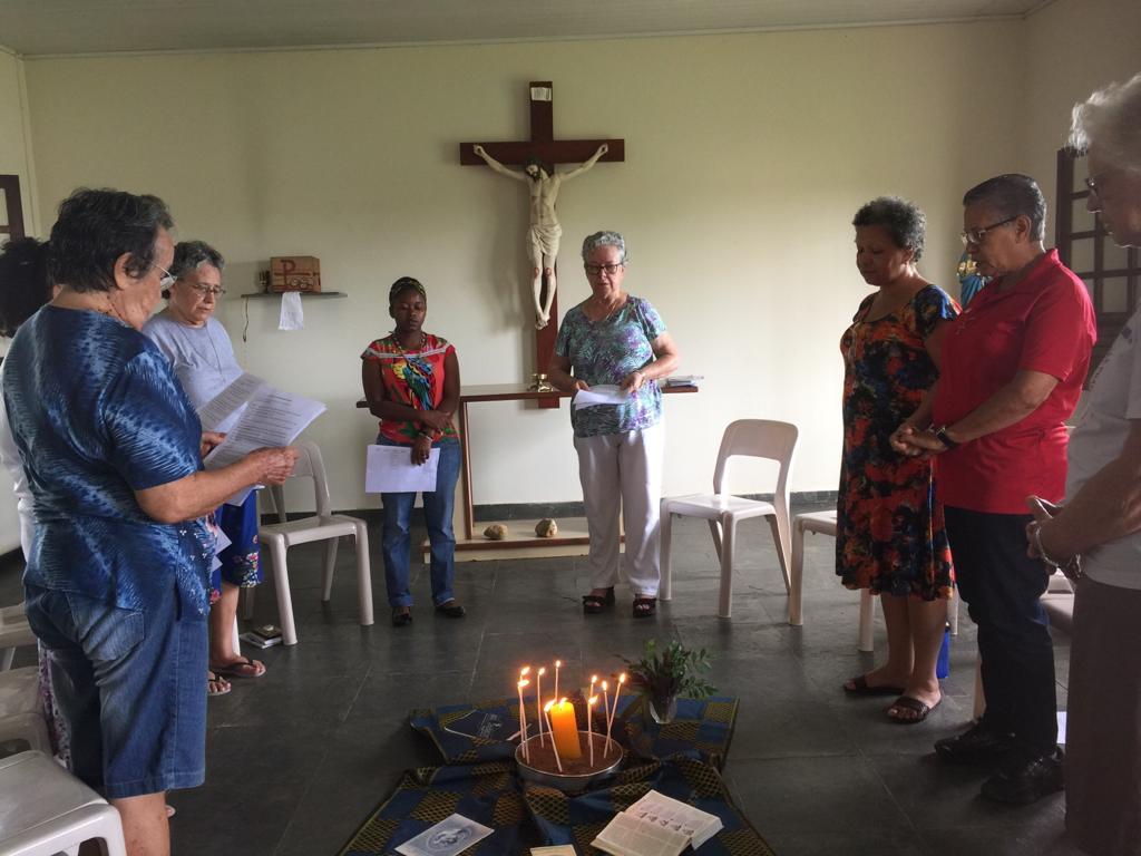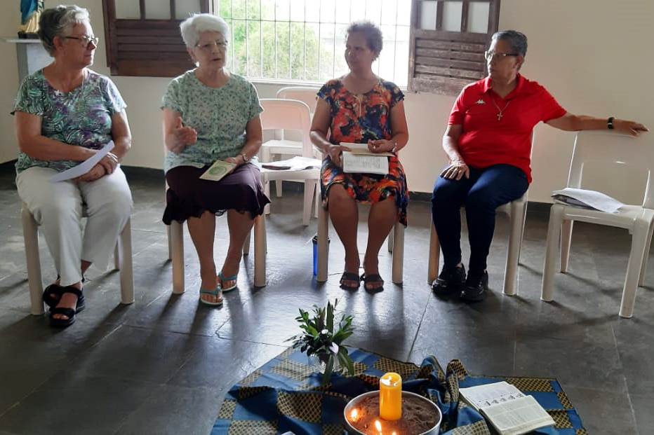 Nos dias 13,14/04 estivemos reunidas em Feira de Santana para um tempo de formação com Terezinha e Helena Pin e as três Comunidades da Bahia. Foram momentos de luzes e muita contribuição fraterna. Tempo forte de formação e convívio entre nós e com certeza não faltou chamada de atenção para muitos aspectos da nossa Consagração. Num primeiro momento partilhamos aqueles textos que nos foram enviados para estudo preparatório: Rute, Elias e Jacó. Revisitamos os parágrafos das Constituições no que se refere à formação, aprofundamos nossas Linhas de Formação para Toda a Vida e estudamos os Programas de Formação do Instituto para cada etapa. Vimos detalhadamente todo o processo e fomos percebendo na nossa vida do dia a dia (neste momento a Rosineia, em preparação para os Votos Perpétuos, apresentou seu programa para o ano). Tivemos uma noite de convívio e partilha dos nossos saberes. No dia 15/04 vimos detalhadamente a proposta final para Criação da Regional com todas as suas possibilidades e desafios.