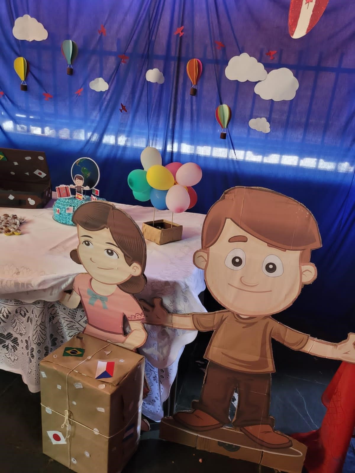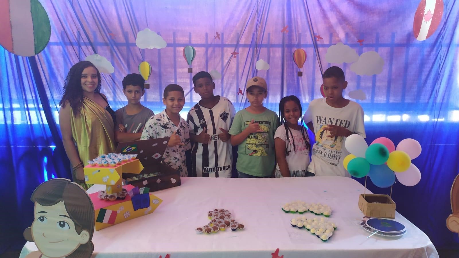 Para preparar a festa, foi criada uma comissão, composta por crianças, adolescentes e duas educadoras sociais que mediaram o processo. O evento foi significativo, lúdico, lindo, animado e bem informativo, com mesa com cardápio temático, bolo, docinhos, guloseimas e salgadinhos deliciosos, e um espaço para foto e Karaokê.