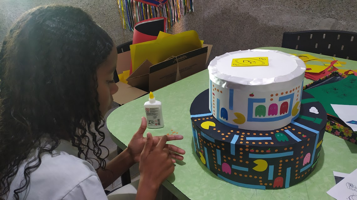 No dia 27/06 foi realizada no Projeto Vida a festa dos aniversariantes do 1º semestre, que teve como temática os jogos. O momento foi preparado pelas crianças e adolescentes, que se inscreveram para participar da comissão apoiada pela educadora Paula Rhis. O tema foi escolhido pelos participantes da comissão, que se dedicaram à montagem das decorações baseadas nos jogos Pacman, Minecraft, Mário, Dominó e Uno.