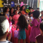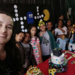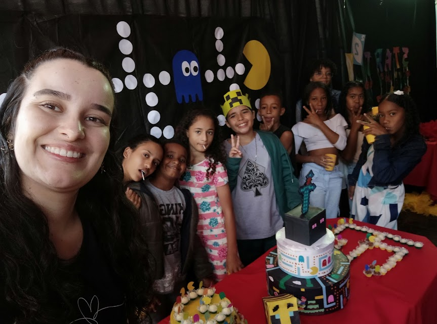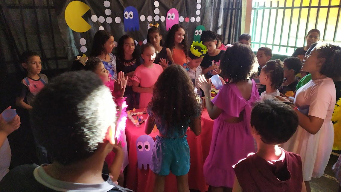 A festa aconteceu em ambos os turnos, com direito a mesa de guloseimas, inspirada no Minecraft, mesa de doces do jogo Pacman, plaquinhas para foto, pista de dança e karaokê, para animar os participantes. Foi um momento de interação entre equipe, crianças e adolescentes, fortalecendo assim ainda mais nossos vínculos.