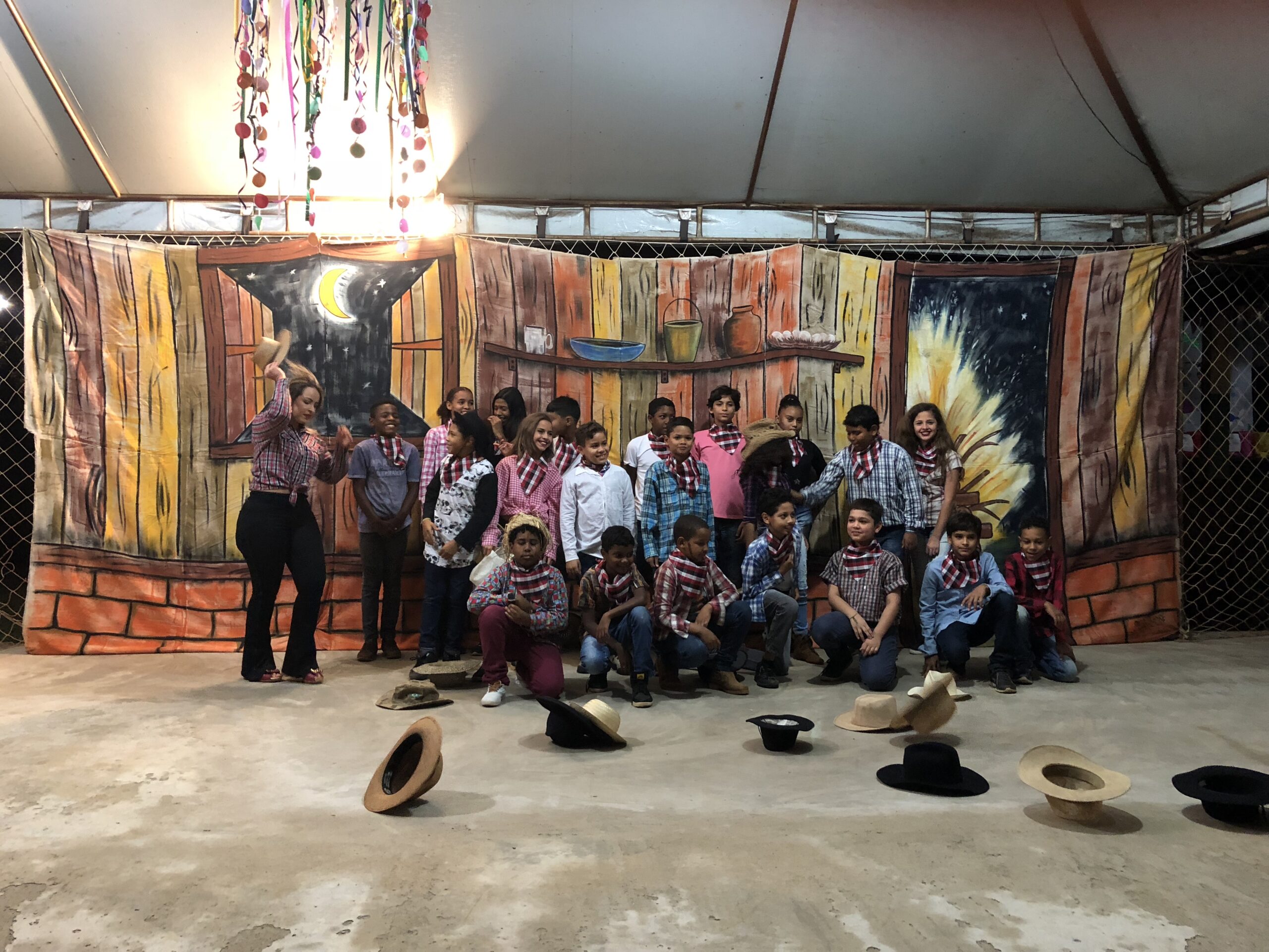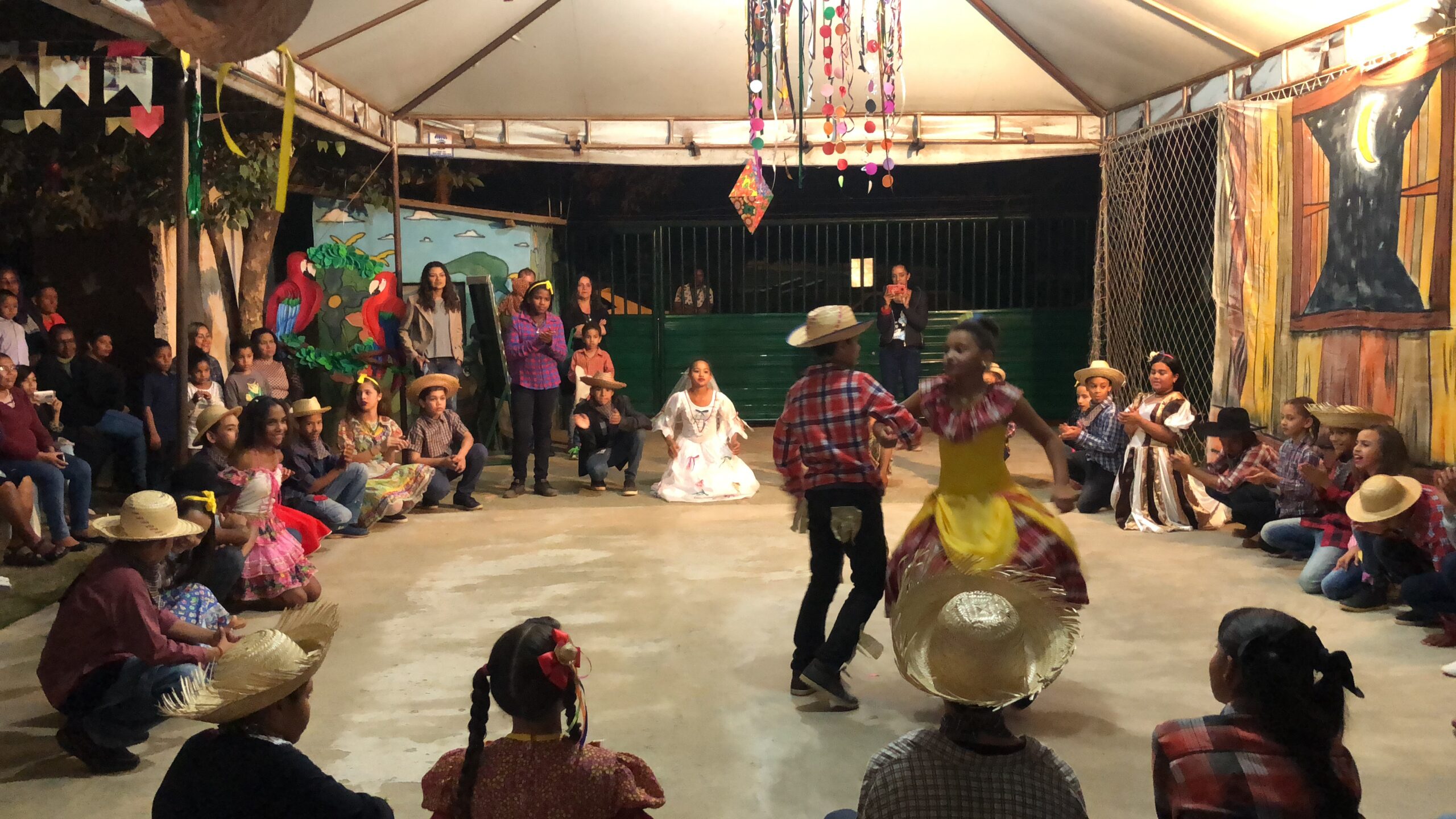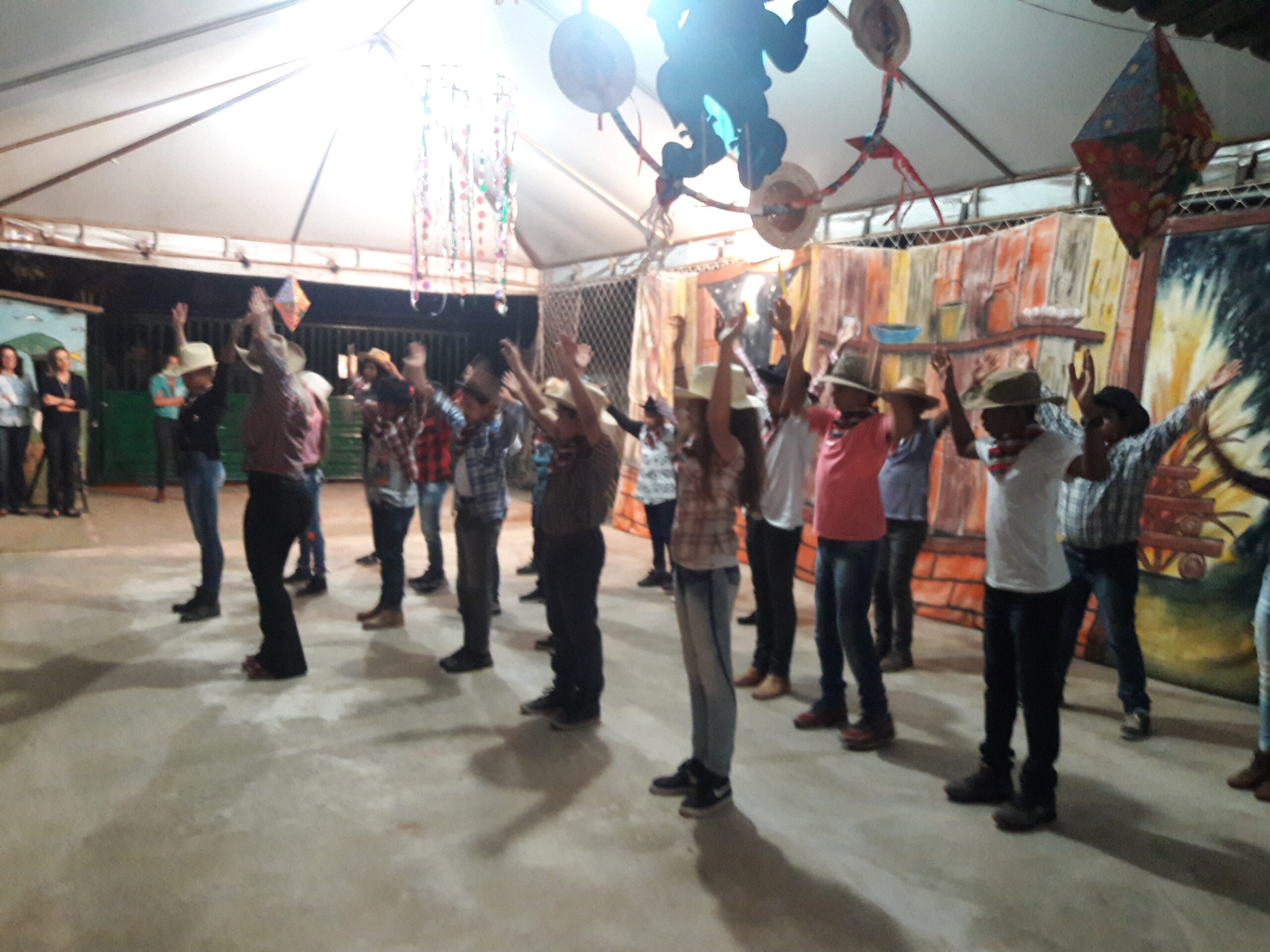 A quadrilha, dança típica, brilhou aos passos das crianças e adolescentes com o brilho e animação da educadora Vânia Fonseca.