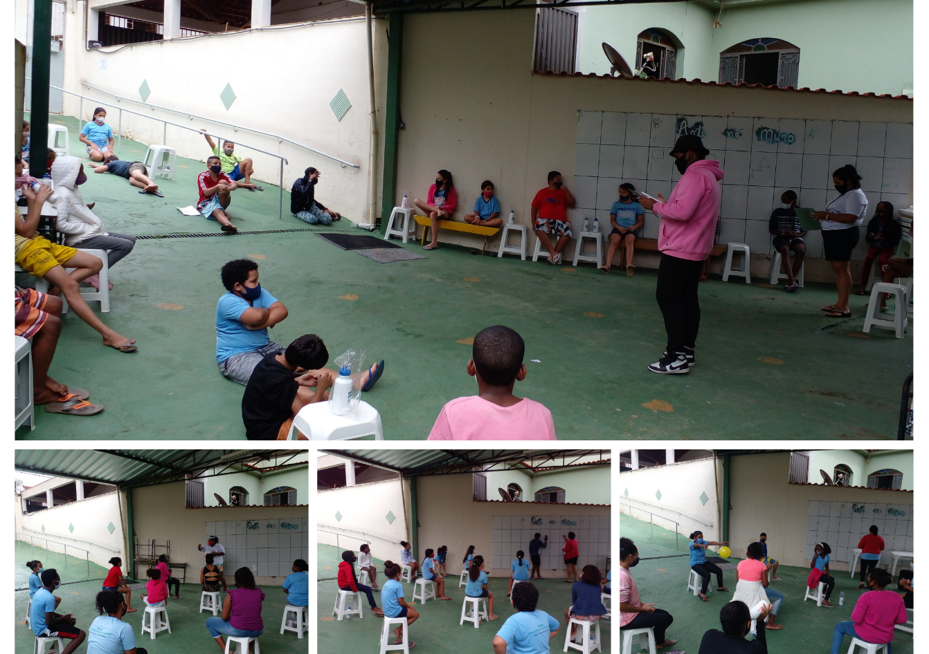 Para marcar esse momento, que tem por objetivo proporcionar o direito ao brincar, ao lazer, à sociabilidade educativa e atividades culturais, foi promovido pela equipe uma gincana super divertida. Os grupos subdivididos participavam de jogos de adivinhação de desenhos no mural, adivinhação de músicas com o áudio modificado, desafio de dança e outras brincadeiras, seguindo todo o protocolo de distanciamento social e cuidados sanitários necessários.