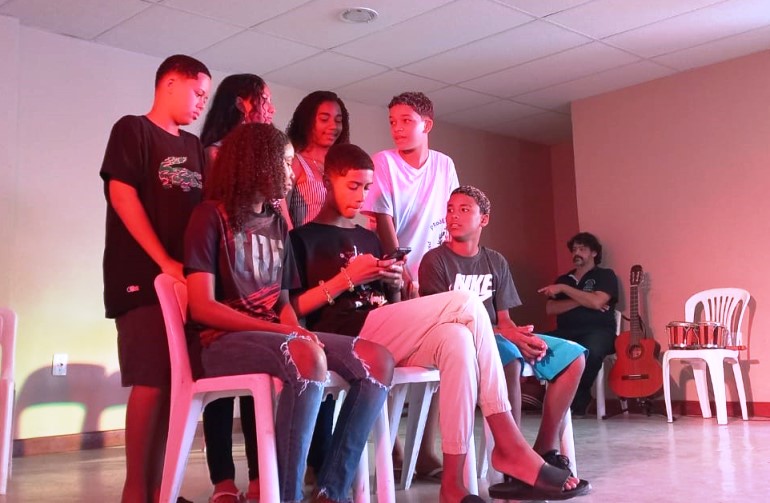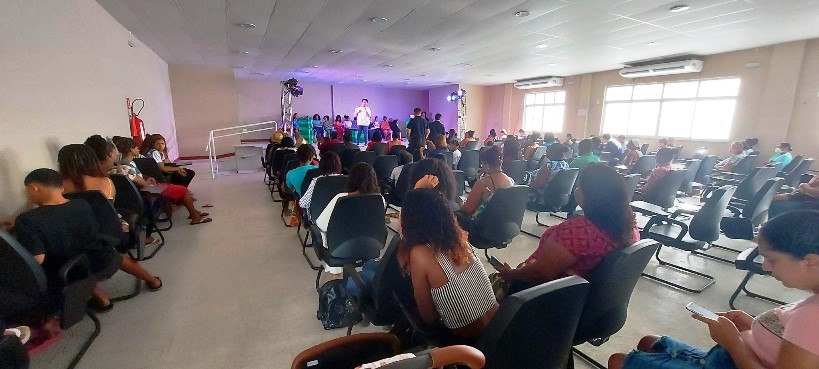 O dia 01 de junho foi escolhido para a realização do encerramento de dois projetos desenvolvidos na oficina de Teatro promovida pelo Projeto Vida. Após três meses de preparação, ensaios e reflexões, as apresentações aconteceram no auditório do CRAS-CAI do território, e contou com a presença de familiares, de crianças e adolescentes de outros serviços do território.