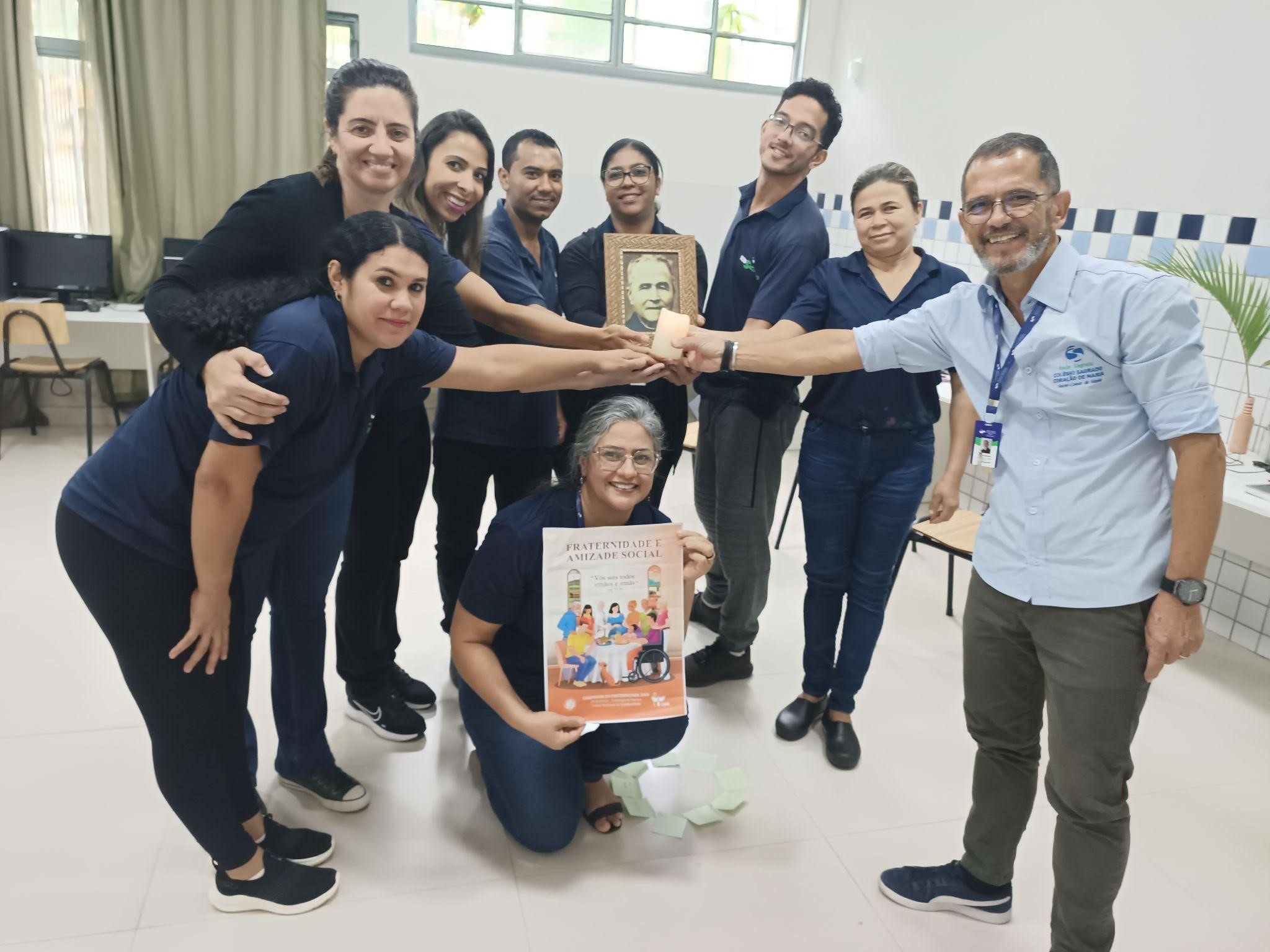 Em sequência, Sérgio apresentou a imagem da Campanha da Fraternidade 2024, que traz como tema ‘Fraternidade e Amizade Social’, ressaltando que o sonho de Deus é a vivência da fraternidade entre todas as criaturas e que essa realidade só acontece no coletivo.