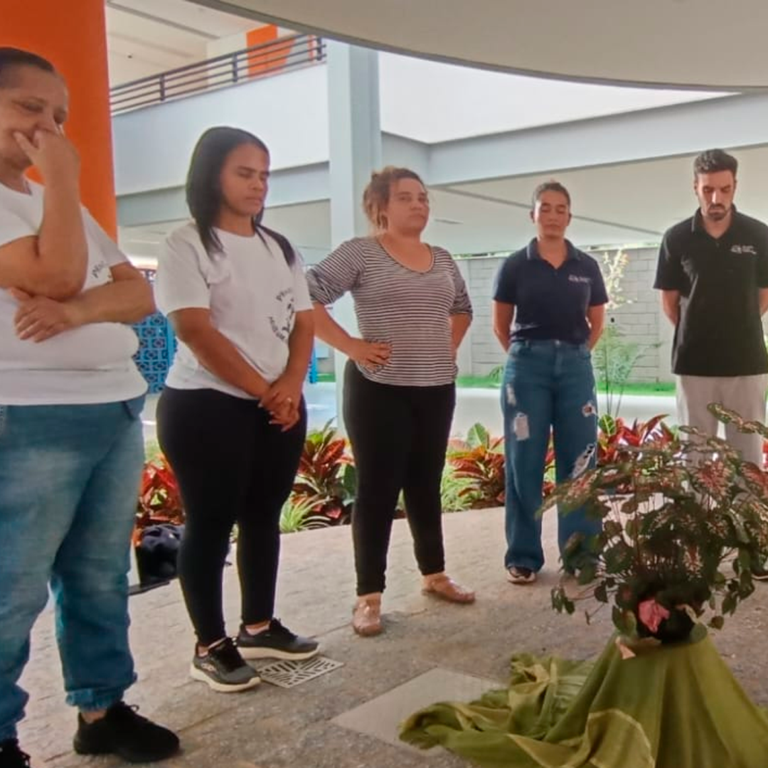 A proposta aconteceu em dois momentos: primeiro, uma pausa orante e reflexiva no espaço simbólico da unidade Irmã Saint Jean 🌱. Em seguida, todos se reuniram no espaço multifuncional para acompanhar a inspiradora fala da Profa. Moema Miranda – franciscana da 3ª Ordem, socióloga, antropóloga e assessora do Sínodo para a Amazônia.