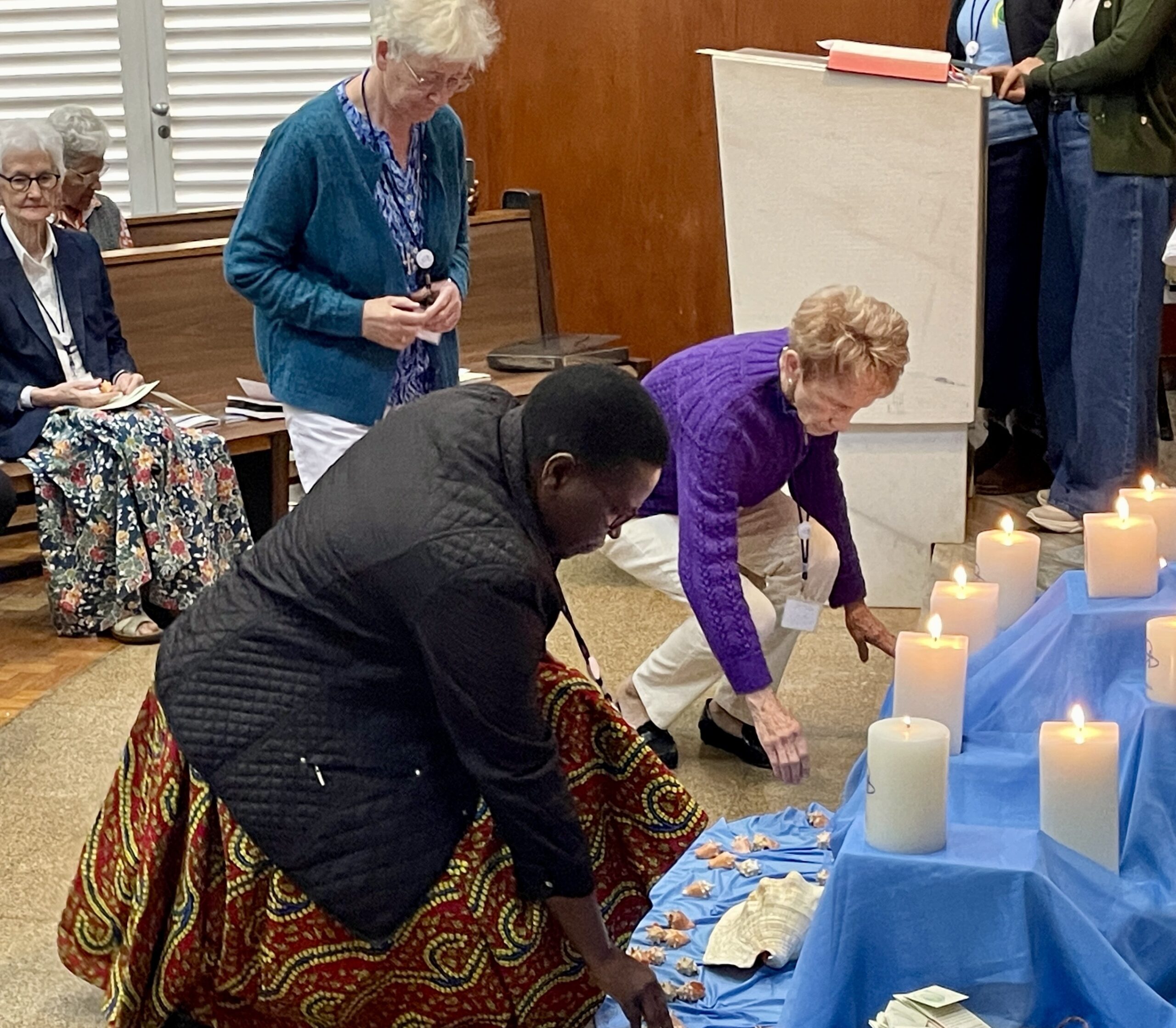 As Religiosas do Sagrado Coração de Maria iniciaram a manhã do dia 09 de julho com a Celebração de Boas-vindas do Capítulo Geral, centrada na reflexão sobre a escuta, simbolizada por uma Concha. Uma referência ao ato de escutar com profundidade, reverência e abertura interior, não apenas aos sons exteriores, mas também aos murmúrios do Espírito e o chamado de Deus no íntimo de cada uma.