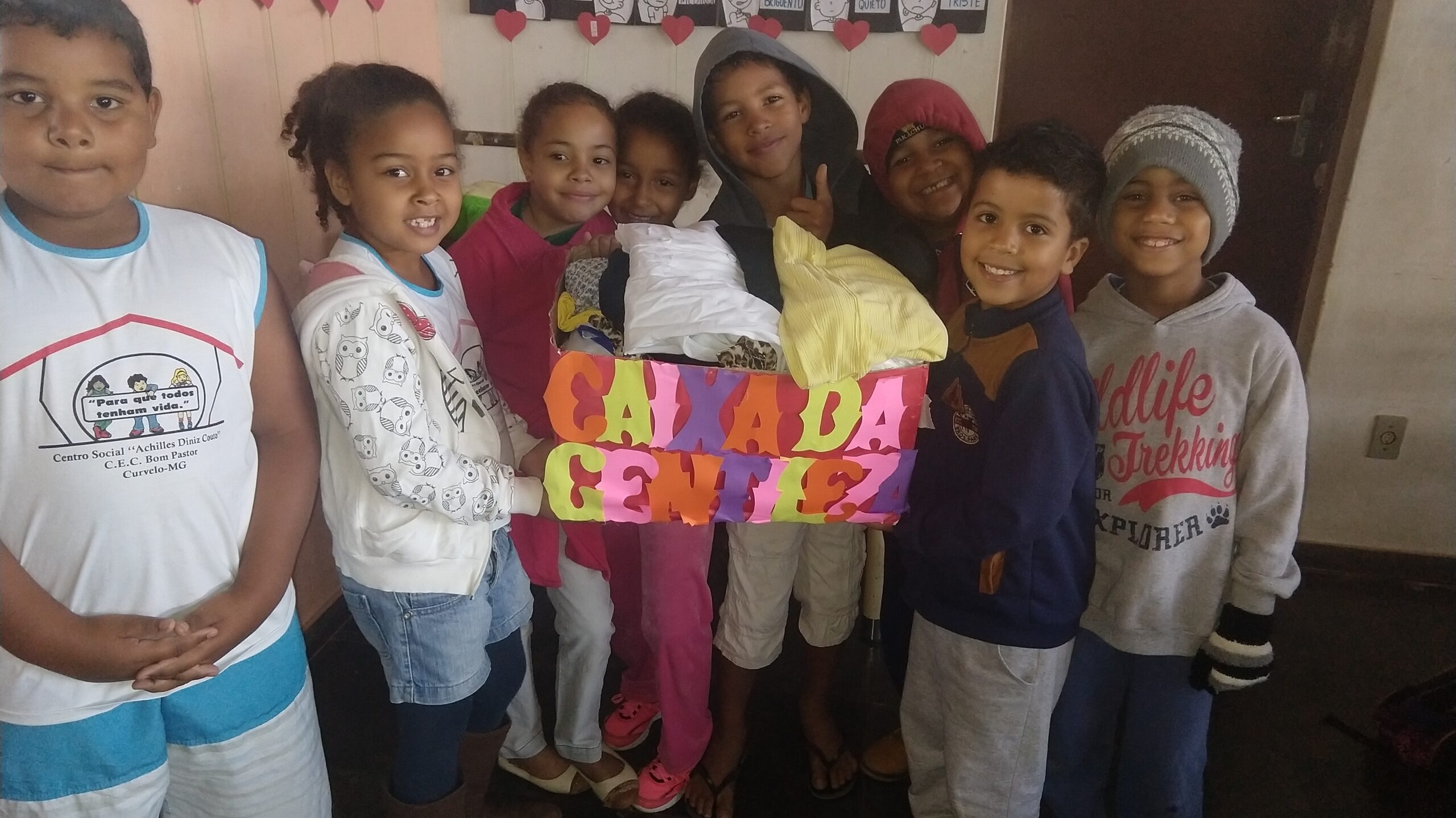 Também conversamos com as crianças e adolescentes sobre doação e confeccionamos a “Caixa da Gentileza” que está sendo utilizada para guardar doações de roupas e sapatos. O resultado está sendo ótimo!