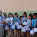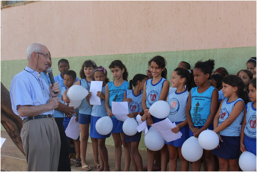 As crianças prestaram uma singela homenagem a Dom José Mauro, juntamente com os colaboradores, membros da Associação Dom José Mauro: Irmãs Helena Pin, Joanita José Vasco e Geny Alves de Oliveira e Pe. Leone Russo, que contou um pouco da vida.