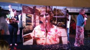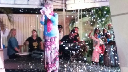 Um grande painel com a foto da Ir. Judith foi montado pelas crianças. Houve fogos, música e muita alegria.