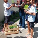 Durante a semana do meio ambiente, celebrada na Unidade no início do mês de junho, uma das atividades realizadas foi o plantio de sementes de hortaliças, em garrafas pet reutilizadas. Neste mês, após as plantas terem germinado, as mudas foram entregues às crianças e aos adolescentes para que fossem cuidadas e consumidas em casa.