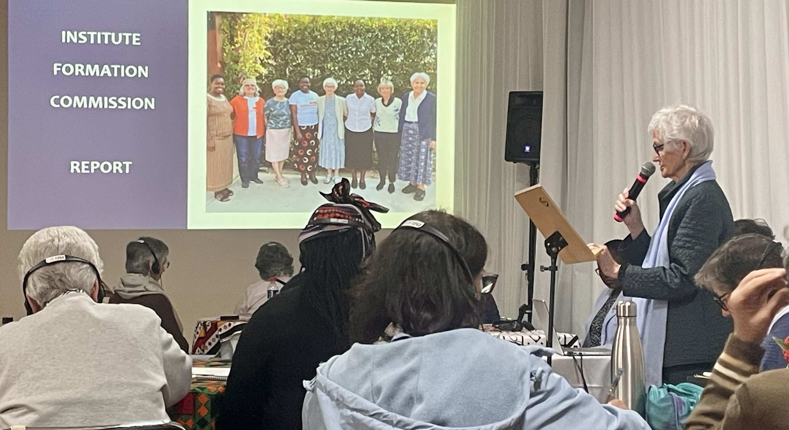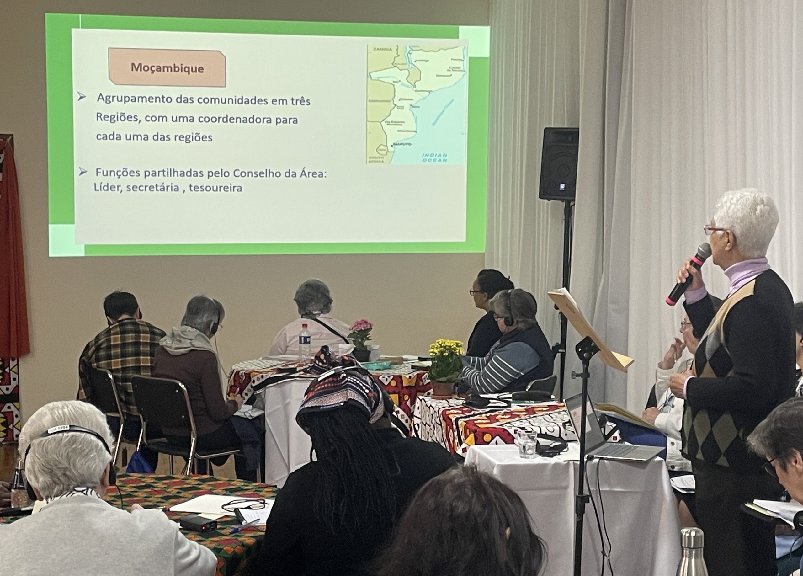 O primeiro dia de reuniões, no domingo 13, começou com uma missa celebrada pelo Padre Geraldo De Mori SJ, seguida pela partilha do Relatório da Equipe de Liderança do Instituto, formada pelas Irmãs Margaret Fielding, Paré Moreira, Ana Luísa Pinto, Sipiwe Phiri e Monica Walsh, incluindo informações enviadas pelas Áreas e Grupos do Instituto. No início da apresentação as irmãs citaram a Liderança do Papa Francisco como uma inspiração, com o legado da Sinodalidade, que nos dá esperança.
