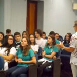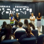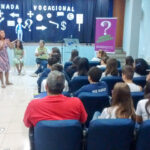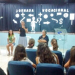 Dos 6ºs ao 3º ano. Aqui se dialogou sobre o chamado que Deus faz a cada um(a) de maneira particular… onde, quem, quando e como Ele quer! Fomos desafiadas pelos jovens com perguntas sérias sobre a nossa Vida Religiosa Consagrada no mundo de hoje, ou seja, bem dentro do contexto sócio, econômico, político e religioso. Dialogar isto conosco e com as formandas teve um sabor bem diferente na provocação de nossos jovens. E quantas descobertas para nós, e sobretudo para os jovens; e muitos ficaram mexidos e provocados também. Uma jovem do 1º Ano do Ensino Médio disse assim: hoje descobri a minha vocação! Ela chorava muito e com isto todo o grupo chorou muito, inclusive nós.