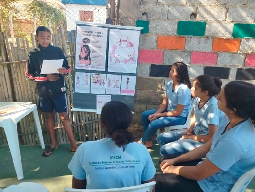 A temática foi trabalhada no Grupo de Convivência, com as crianças e adolescentes, através de reflexão e a análise dos diversos tipos de violência contra a mulher, bem como uma autoavaliação de como nos comportamos diante das violências que nós sofremos por sermos mulheres. Acreditamos que as consequências da violência doméstica podem ser muito sérias, na vida, ou melhor, no futuro dos atendidos. Pois, as crianças e adolescentes aprendem com cada situação que vivenciam, principalmente avaliando que o primeiro grupo social com que a criança e o adolescente tem contato é a família. Promover a reflexão os ajuda a conscientizar e romper com o ciclo de violência. O círculo familiar é considerado um espaço privilegiado, sendo a base para o desenvolvimento físico, mental e psicológico de seus membros.