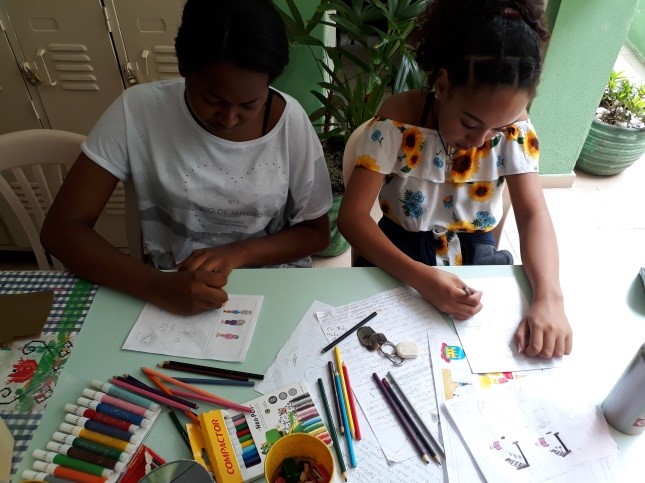Na unidade o trabalho foi desenvolvido com algumas crianças e adolescentes e três delas abraçaram realmente a proposta e se dedicaram em montar a revistinha representando a instituição.