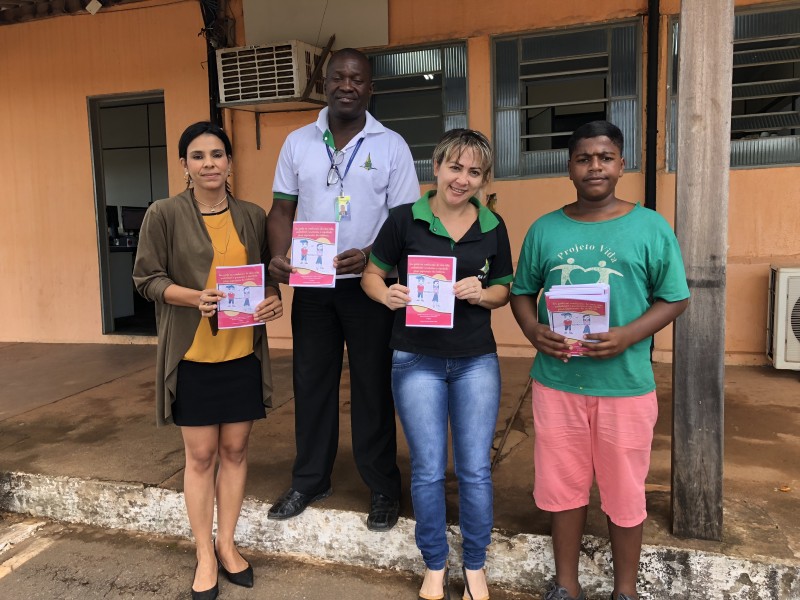 Durante a caminhada os adolescentes carregaram uma faixa de repúdio à violência e entregaram para a comunidade a 6ª edição da cartilha de “Prevenção ao Abuso e Exploração Sexual de Crianças e Adolescentes” elaborada por eles.