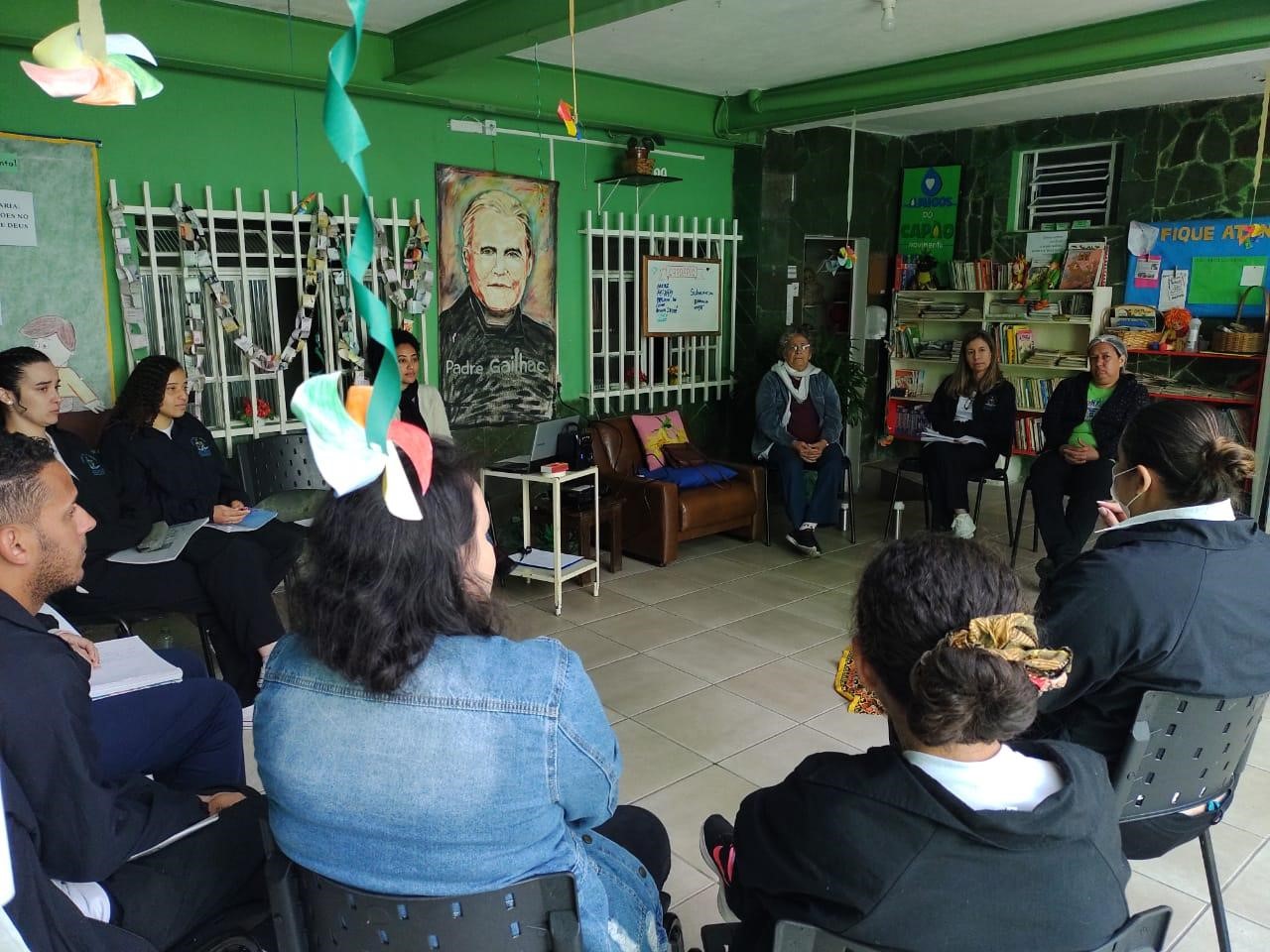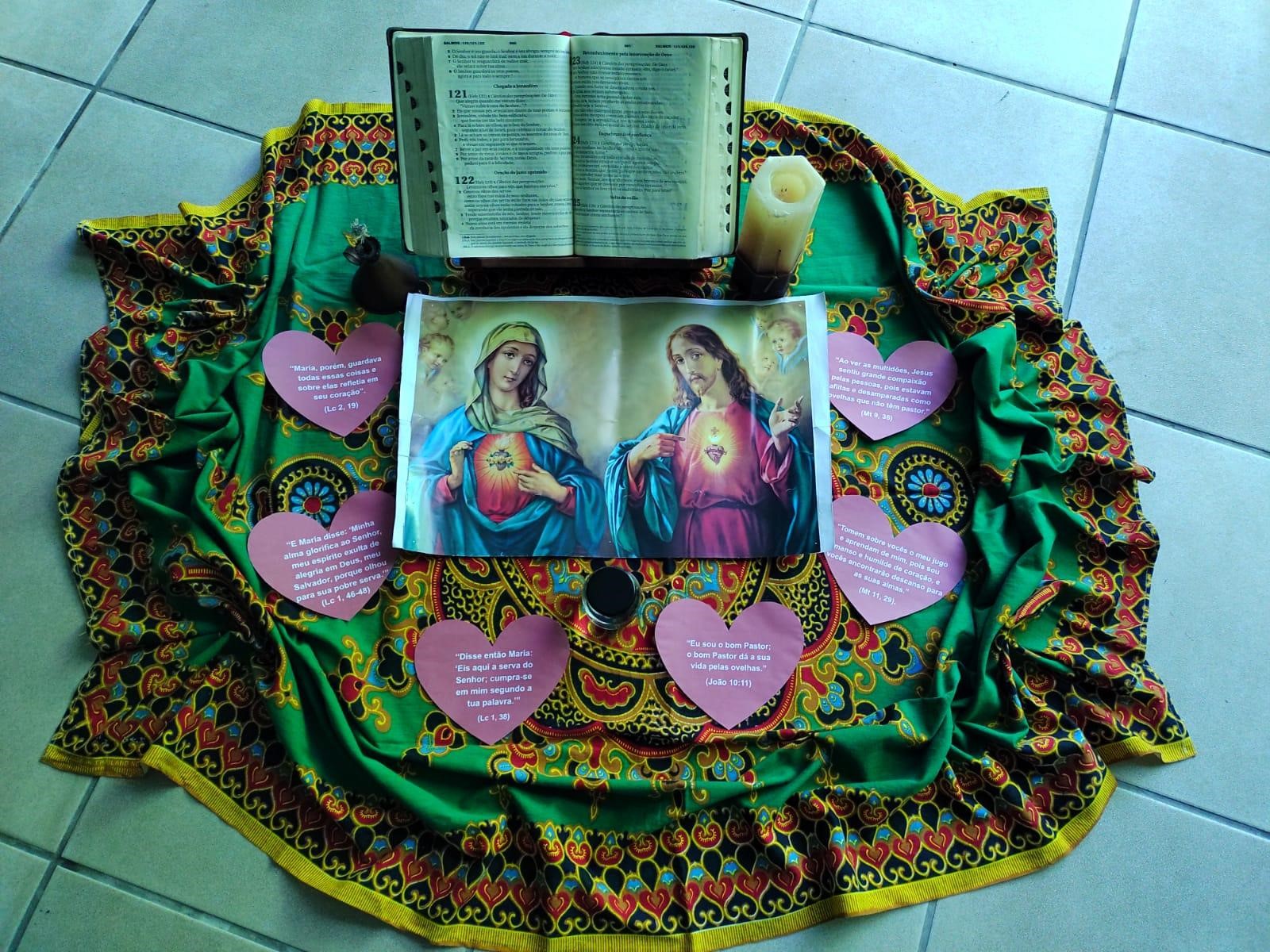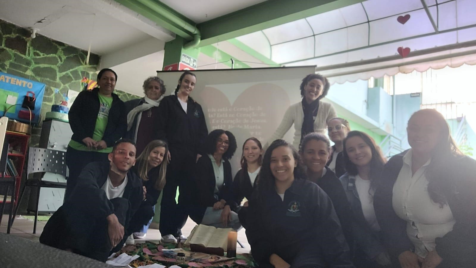 “Jesus e Maria, dois corações no coração de Deus” foi a temática trabalhada pelas Religiosas do Sagrado Coração de Maria – Ir. Rhânella Altina, Ir. Daniela Lino e Ir. Suzana Carvalho, na manhã do dia 23 de junho. Toda a equipe de colaboradores participou do momento, que foi bastante rico. Foram instigadas reflexões sobre o Cuidar de Si e o Cuidar do Outro, fazendo assim um link com a frase do mês anterior, referente ao Ano Jubilar Jean Gailhac. Neste dia, a Instituição ganhou de presente um pouquinho da água retirada da fonte da Casa Mãe da Congregação, para nós uma lembrança inestimável. Que toda esta energia positiva fortaleça o trabalho na Unidade e das RSCM.