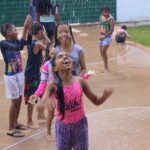 O banho de mangueira proporcionou muita diversão e interação em um dia agradável de sol. As crianças e os adolescentes se divertiram bastante com as brincadeiras de combate de balões de água, futebol de sabão na lona, estoura balão e queimada maluca, e todos regados a um delicioso banho de mangueira.