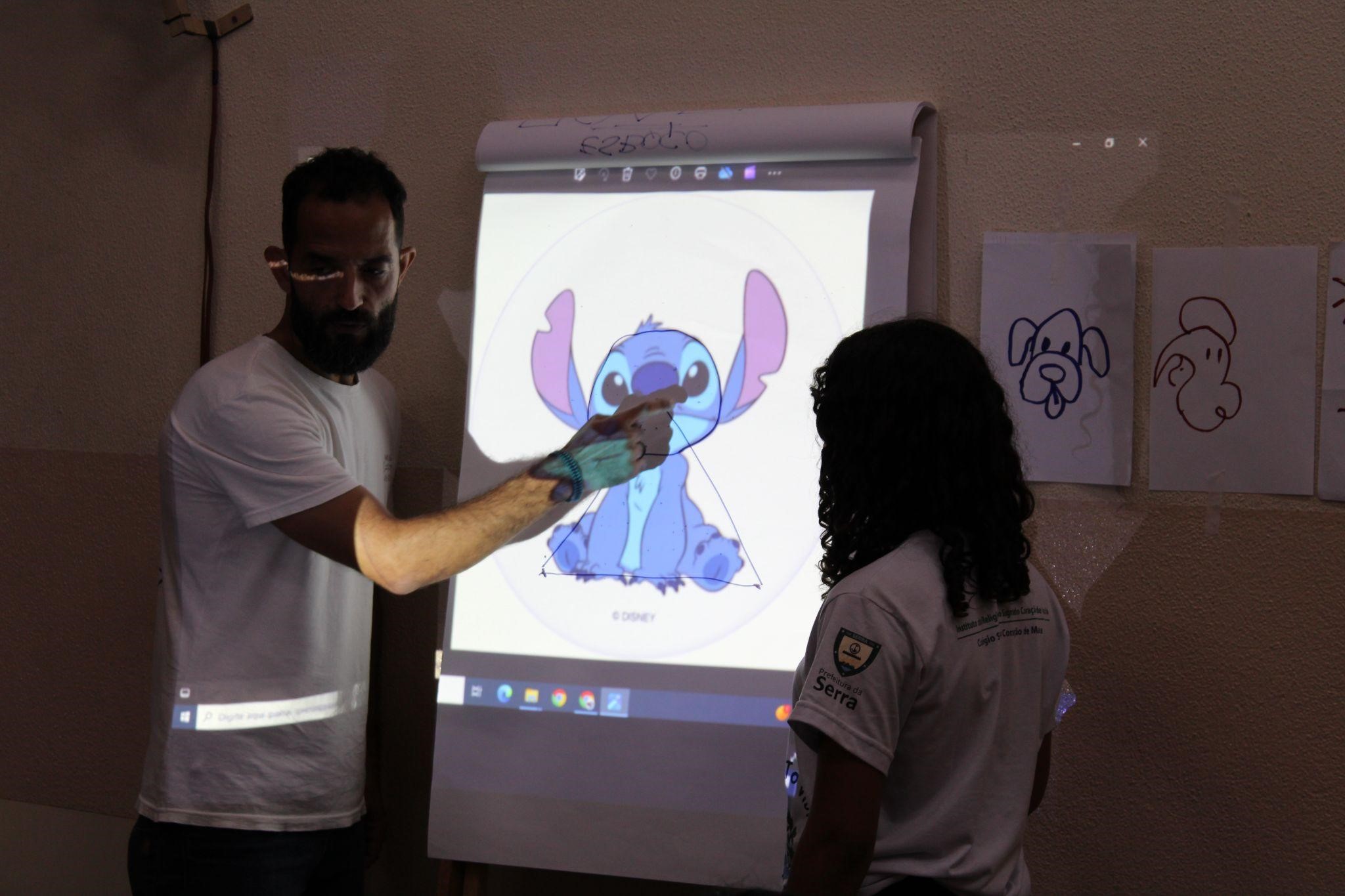 Durante as atividades, o oficineiro tem trabalhado técnicas básicas de traços e proporções, e seguirá como inspiração o conhecimento adquirido durante o trabalho de campo.