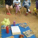 Para este momento, os educadores levaram as crianças e adolescentes para a horta. Chegando lá tinham todo um ambiente preparado previamente, com cadeiras em círculo e, no centro, a Bíblia, arranjo de flores, vela e frutas. Inicialmente, os educadores pediram silêncio aos participantes, para que pudessem perceber o ambiente e os sons da natureza. A seguir disseram a todos que Deus nos fala quando nos silenciamos e deixamos nosso coração ouvir. Disse que Deus espera que estejamos prontos para ouvir, para Ele nos falar, a exemplo do profeta Samuel.
