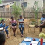 A seguir, Falou-se acerca dos funcionários que trabalham no caminhão de lixo, como é o processo de trabalho dessas pessoas, os desafios vivenciados, as dificuldades encontradas, etc… Após uma escuta atenta, crianças e adolescentes falaram sobre o que veem no bairro: pessoas que colocam o lixo na rua, fora do dia de coleta; que não embalam o lixo de maneira correta; que muitos colocam vidro em embalagem comum, colocando em risco a saúde dos trabalhadores deste setor, etc… Devemos destacar que foi um momento de participação e troca por parte de todos. Mostraram-se interessados em saber de Ozias, como se sentiu passando por essas experiências e ela fez o seguinte relato: