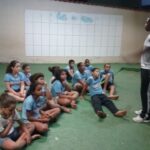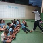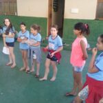 Para finalizar, aconteceu uma oficina de vivência, ministrada pela Coordenadora Ozias Fonseca, com o objetivo de relatar sua experiência durante a XV Missão Jovem: Intercâmbio Solidário. Ozias relatou às crianças e adolescentes sobre sua experiência na limpeza pública (varredura de rua), como é o processo de trabalho das pessoas que são responsáveis pela limpeza urbana, os desafios vivenciados e quais sentimentos são despertados nessas pessoas, de acordo com nossas atitudes para com eles.