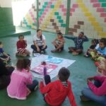 A seguir, foi realizada a leitura bíblica: Samuel 2, 02-17. Após a leitura, provocaram as crianças e adolescentes para que através de uma roda de conversa relatassem histórias que precisavam do conselho de Deus e se em algum momento puderam sentir sua presença.
