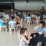 Preparado com muito carinho, foi servido um delicioso almoço, acompanhado de churrasco. Após o almoço, os aniversariantes do semestre foram homenageados, com parabéns e um delicioso bolo. Em seguida foi realizado pelas crianças e pelos adolescentes um ‘chococulto’ (amigo secreto cujo presente é um chocolate). A revelação do amigo secreto foi oportuna para descontraírem e expressarem seus sentimentos uns para com os outros.