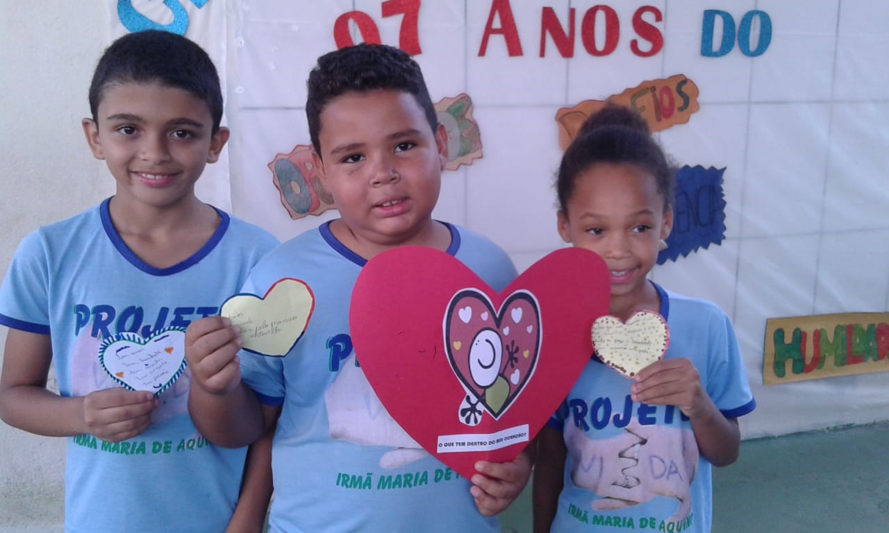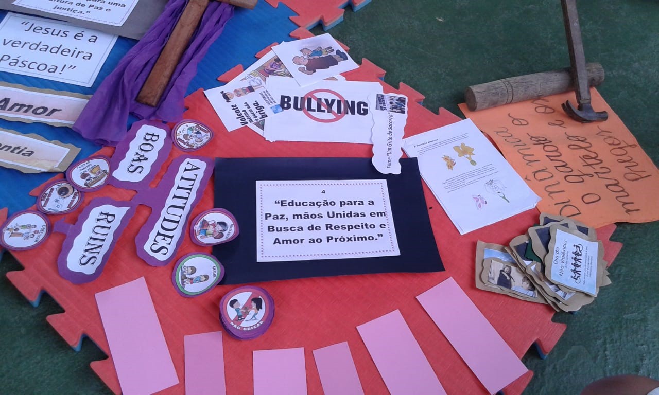 Para dar subsídio à conversa, foi realizada a leitura e a reflexão do texto “Diga não à violência”. Na sequência, as crianças e adolescentes comentaram sobre os tipos de violência que são praticadas na atualidade. Posteriormente, foi construído um mural com a frase: o que tem dentro do meu coração? Cada participante expressou seus sentimentos, suas atitudes e o que precisa ser melhorado, para que possam contribuir com um mundo de paz.